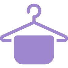 This features a purple square with a hanger symbol in the center. The hanger is suspended from a hook, and it appears to be an iconic representation of a coat hanger. This symbol is often used in various contexts, such as fashion or clothing-related items. The purple color adds a touch of elegance to the image, making it visually appealing and easily recognizable.