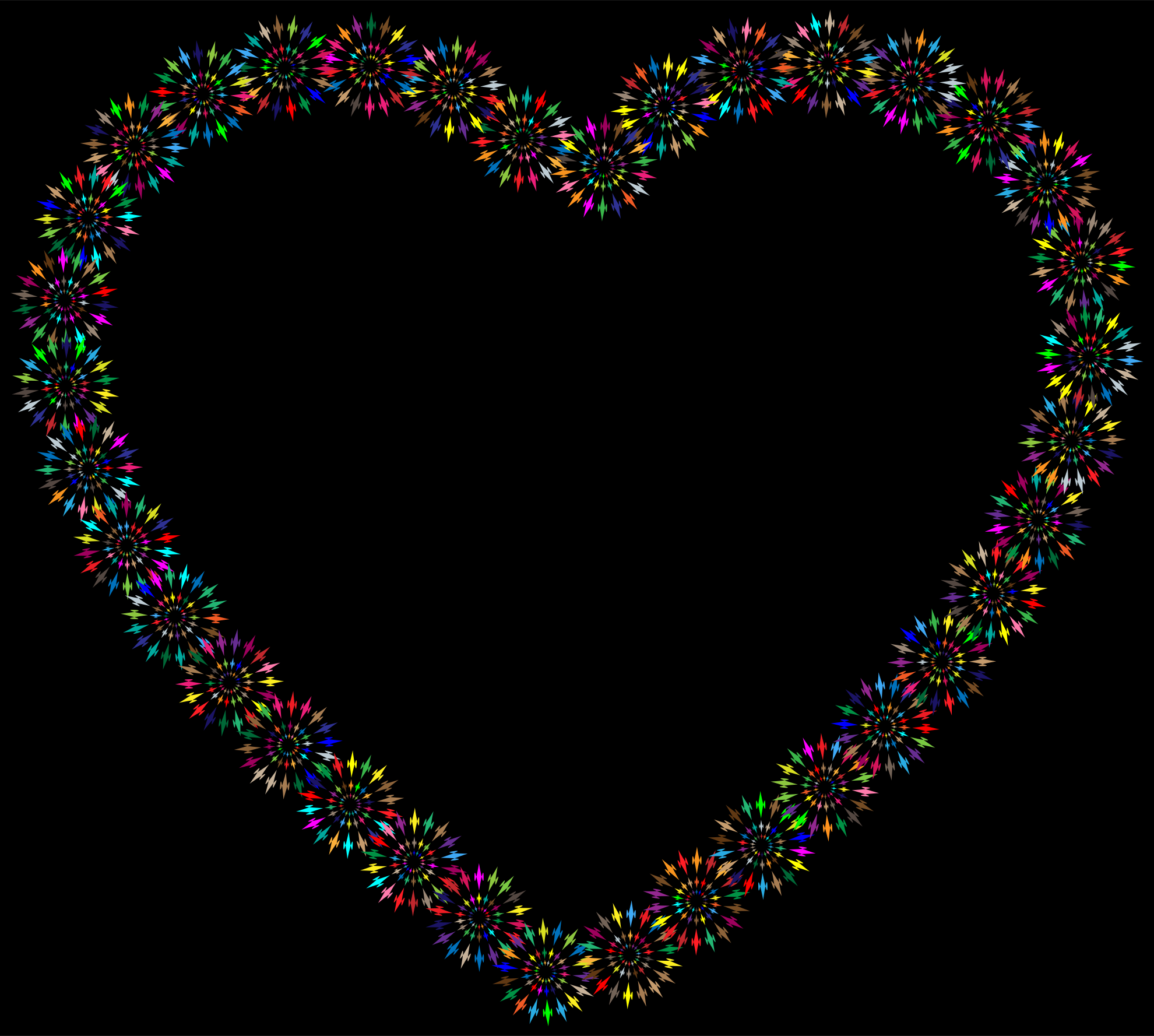 This features a heart made out of small, colorful fireworks. These fireworks are arranged in such a way that they form the shape of a heart, with each individual firework representing a part of the heart. The fireworks come in various colors and sizes, creating an eye-catching display. The overall effect is one of vibrant energy and creativity, as the heart is made up of these small yet intricate pieces.