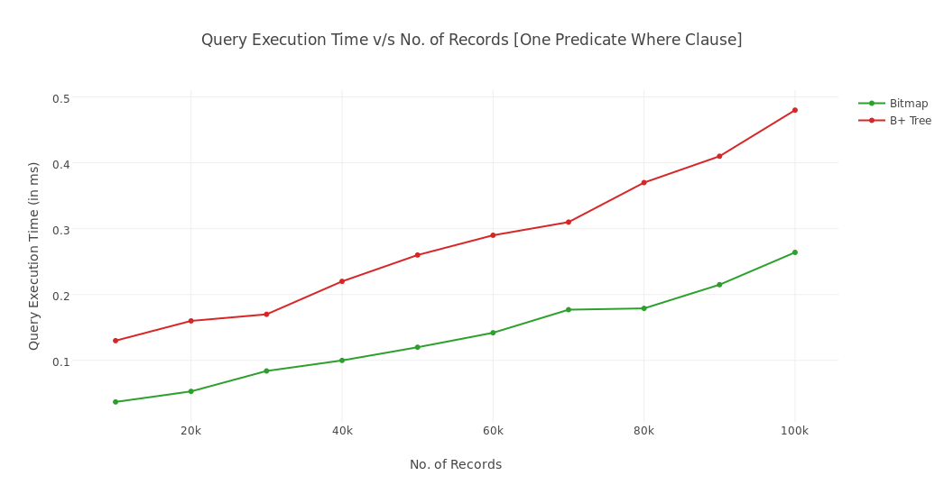 This displays a graph showing the number of records in a database. The graph is divided into two sections, one for execution time and another for the number of records. The execution time section shows an increasing trend with a red line, while the number of records section has a green line that also follows an upward trajectory. This indicates that both the execution time and the number of records are growing over time.