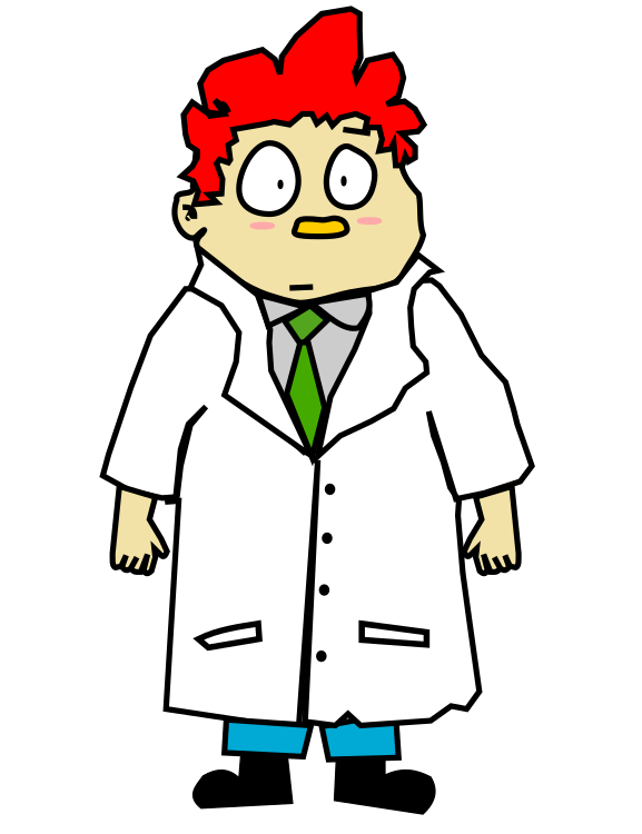 This features a cartoon doctor wearing a white lab coat and a green tie. He has red hair, giving him a distinctive appearance. The doctor appears to be stunned or surprised by something, possibly due to the nature of his work or an unexpected event. His attire suggests that he is well-prepared for any medical situation that may arise.