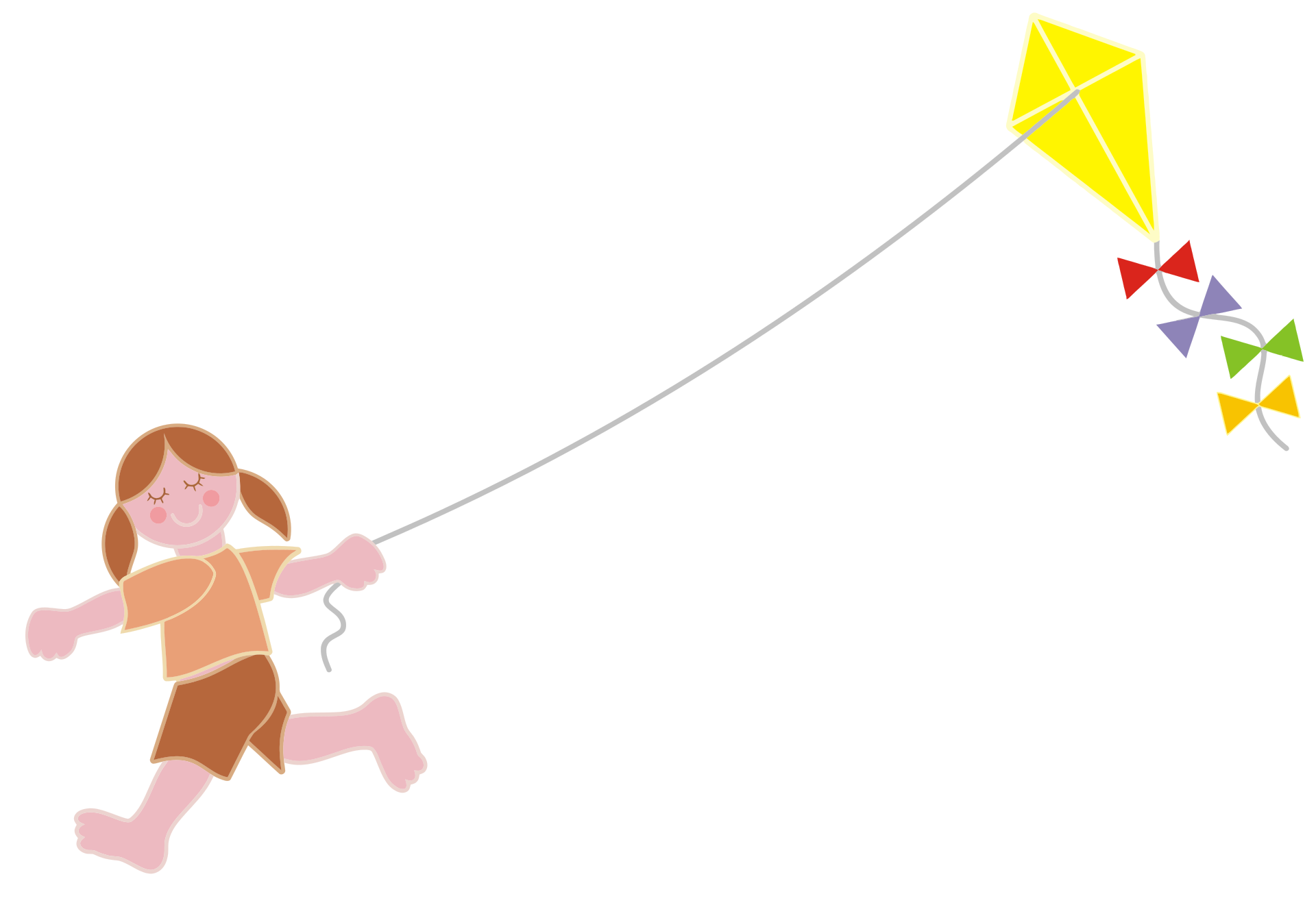 This features a small child flying through the air, holding onto a kite that is attached to a string. The child appears to be enjoying their time outdoors and is actively engaged in playing with the kite. The scene takes place on a white background, which provides a clean and uncluttered backdrop for the image.