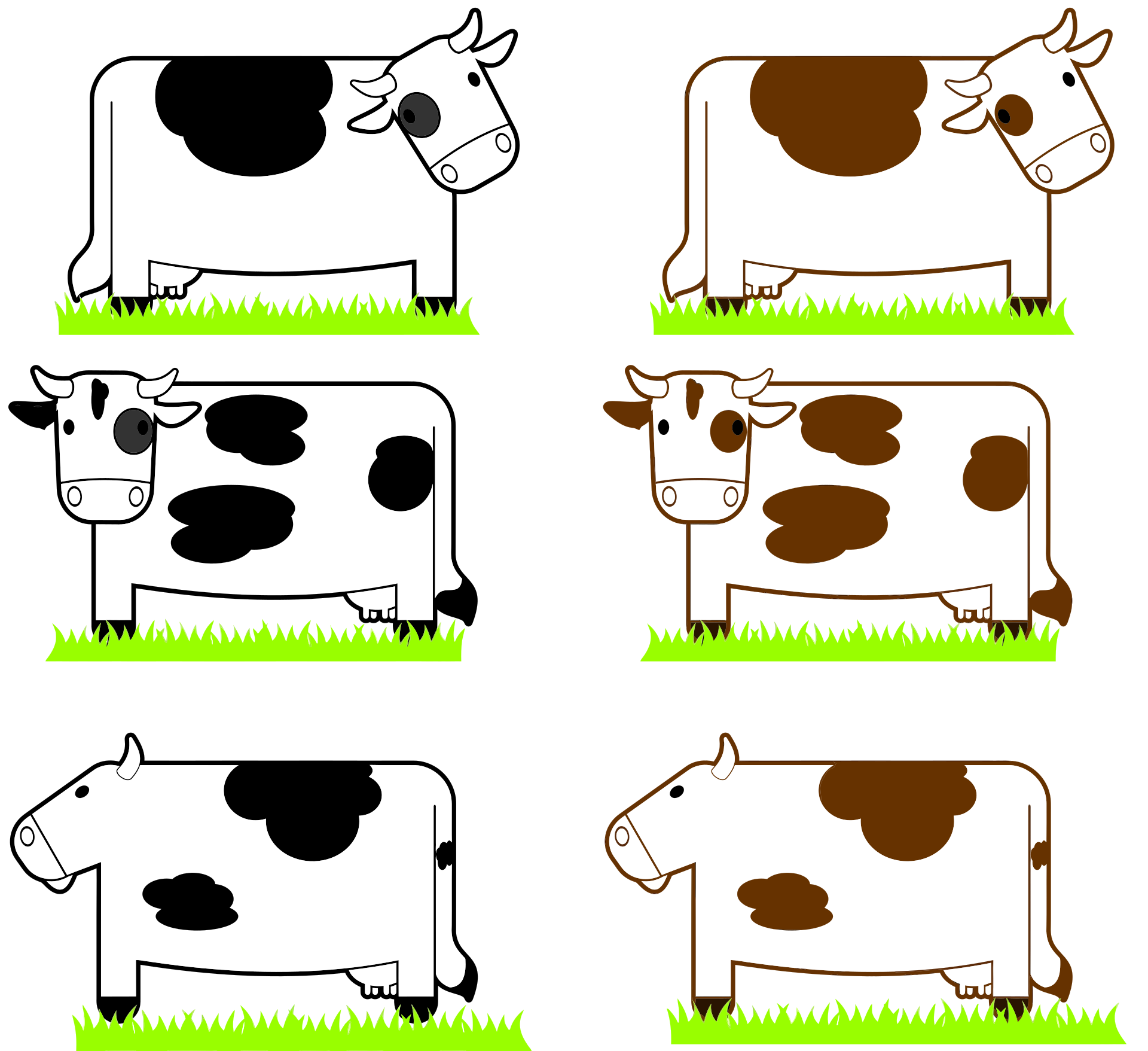 Tags: agriculture, animal, black, bovine, brown, cheese, cows, dairy, grass, livestock, milk, cow, dairy cow, black and white cow, brown and white cow, cartoon cow