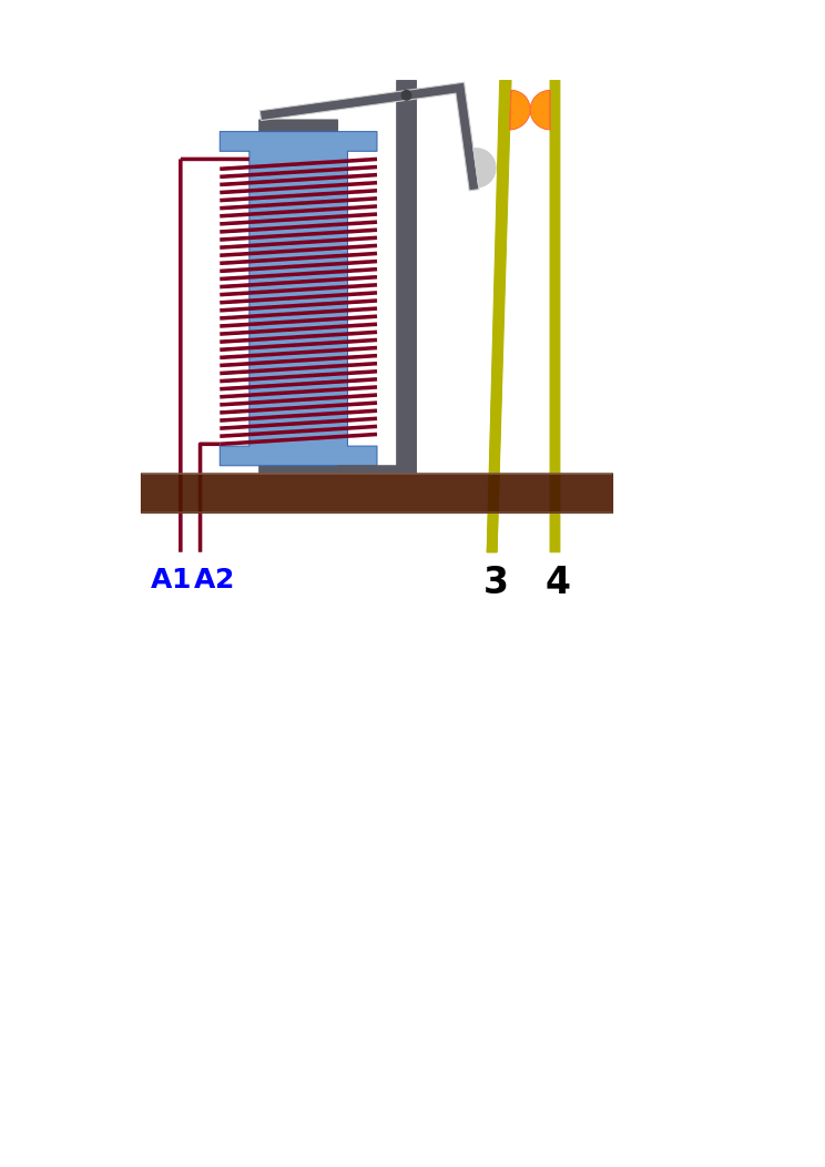 This features a diagram of an electrical device, possibly a magnetic relay. It is labeled with the numbers 1 and 3 on either side of it, indicating specific parts or positions within the device. The drawing also includes a ruler to provide scale for the viewer. This illustration could be used as a reference or educational tool to understand the structure and functioning of such electrical components.