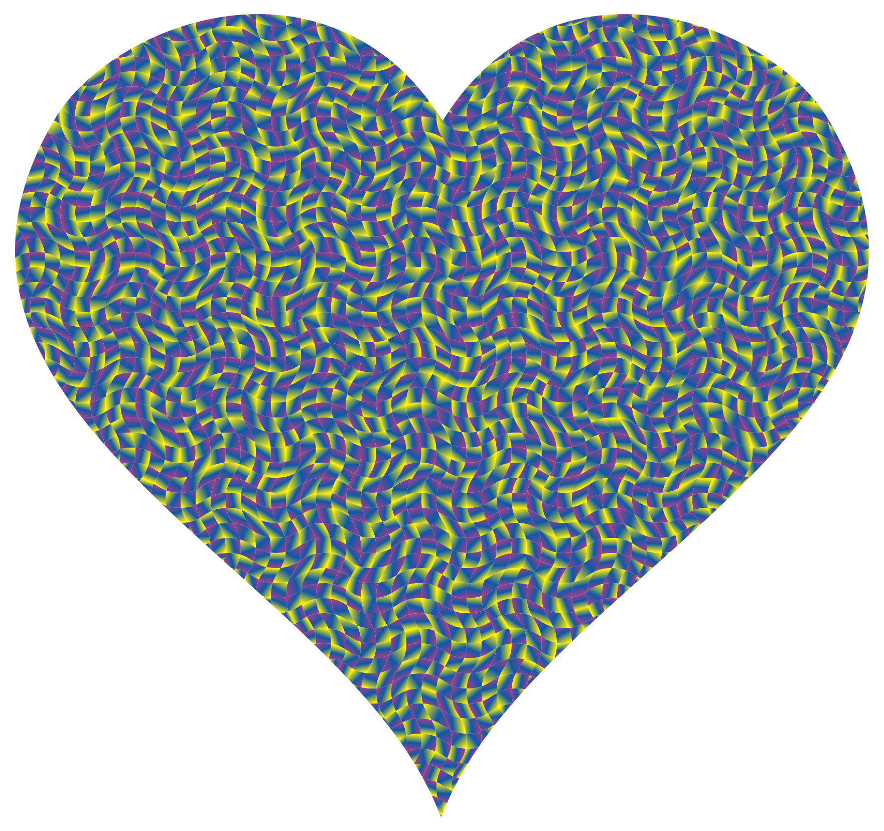 This features a heart-shaped design with a blue, purple and yellow color scheme. The heart is made up of various shapes and patterns that create an interesting visual effect. The colors are vibrant and the heart appears to be shiny, giving it a luminous quality. The overall appearance of the heart gives off a sense of depth and complexity, making it an intriguing piece of artwork.