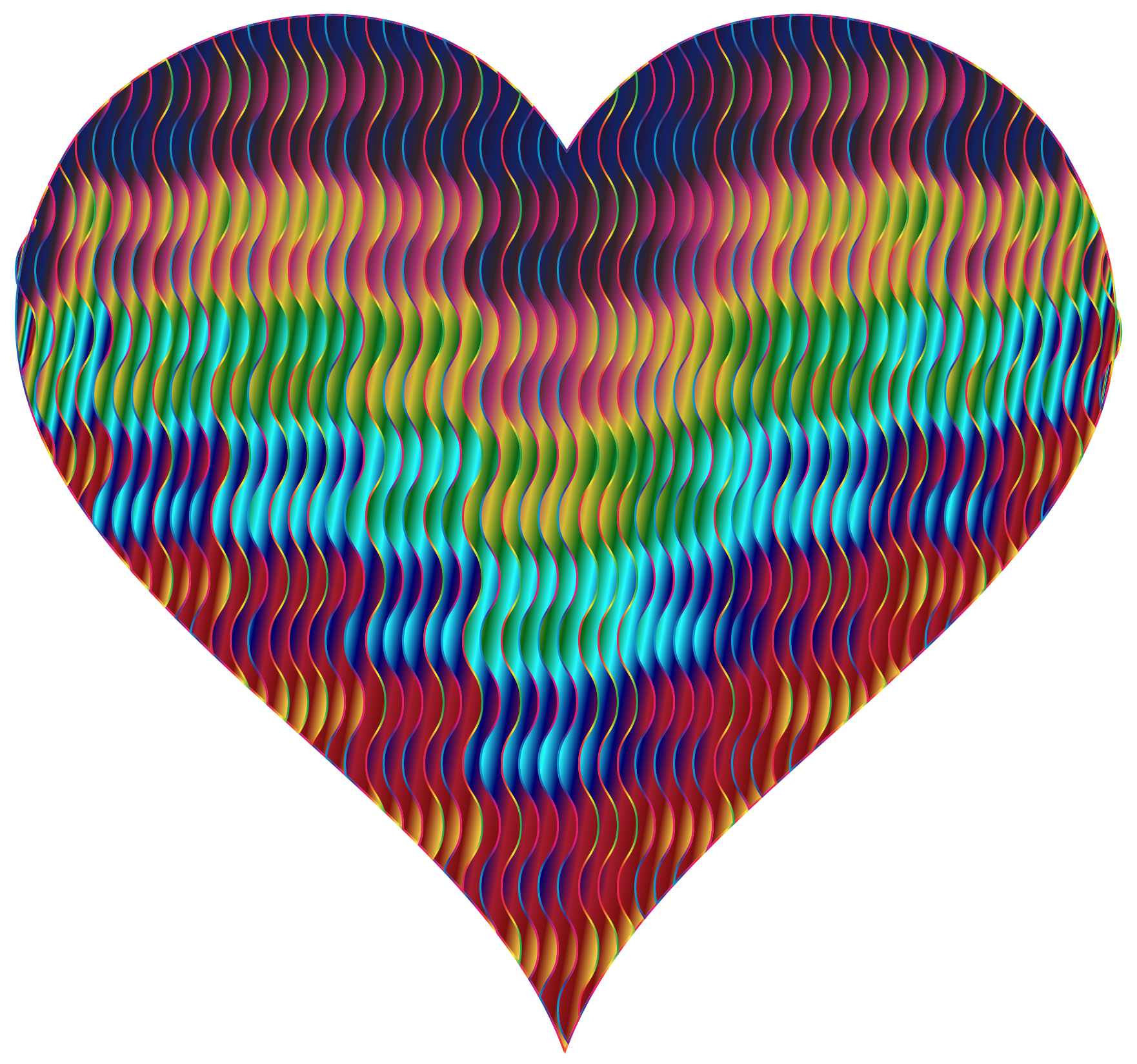 This features a large, colorful heart with a black outline. Inside the heart, there is a wavy pattern of various colors that create an eye-catching and vibrant display. This unique design makes for an interesting and visually appealing piece of art or decoration.