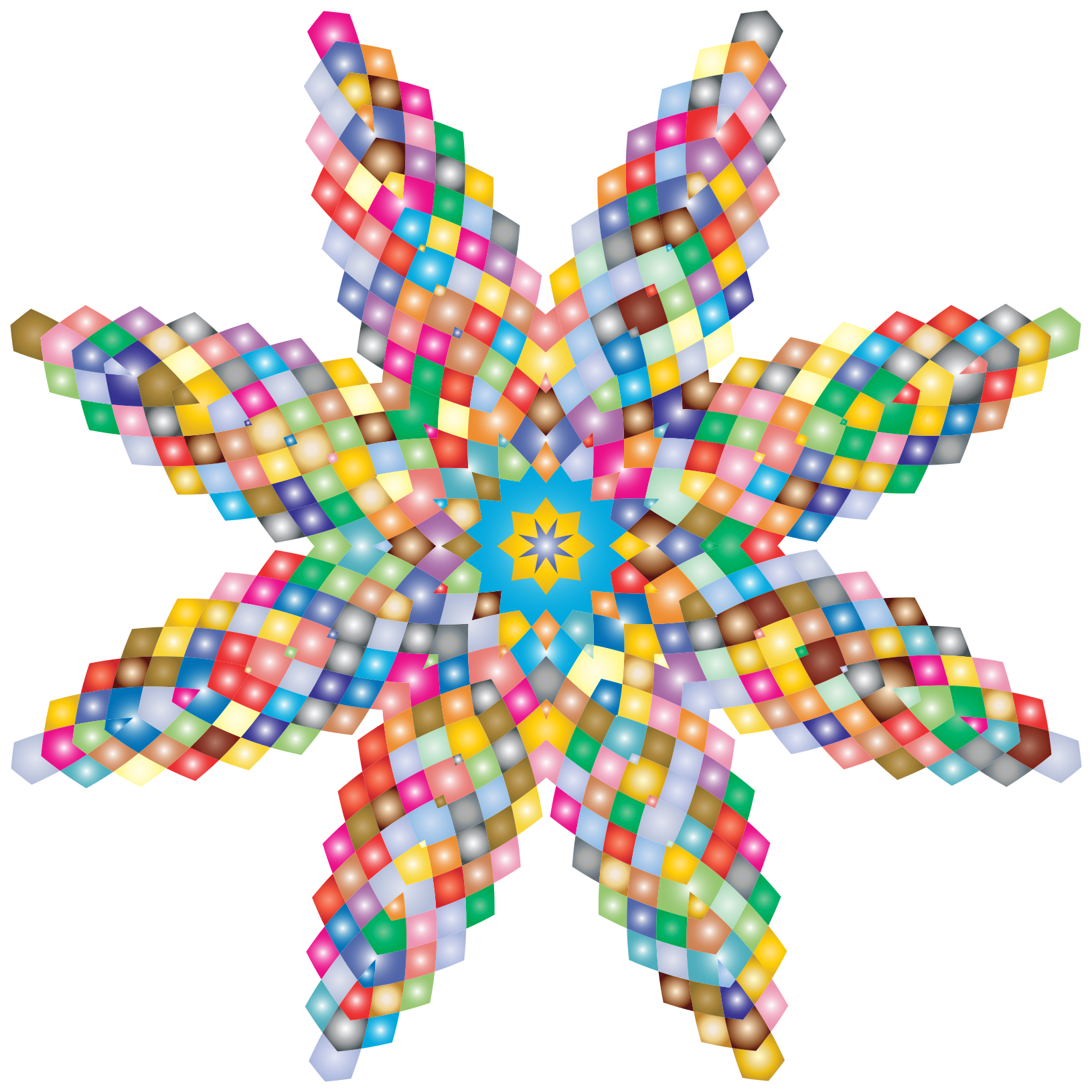 This features a large, colorful flower made out of small circles. These circles vary in color and are arranged to create the appearance of a flower. The flower has eight petals, each one distinctly colored and shaped. The combination of these circles creates an eye-catching and vibrant display that is reminiscent of a kaleidoscope or a mosaic artwork. This unique design showcases creativity and attention to detail in its creation.