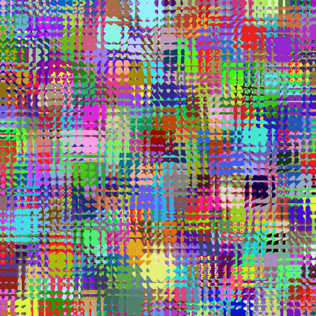 This is a colorful, abstract pattern made up of various shapes and colors. These shapes are arranged in a way that creates an intricate design, with some areas appearing more vibrant than others. The overall effect is a visually stimulating and dynamic composition that captures the viewer's attention. The different colors and patterns create a sense of depth and complexity, making it an interesting and engaging piece of art or decoration.