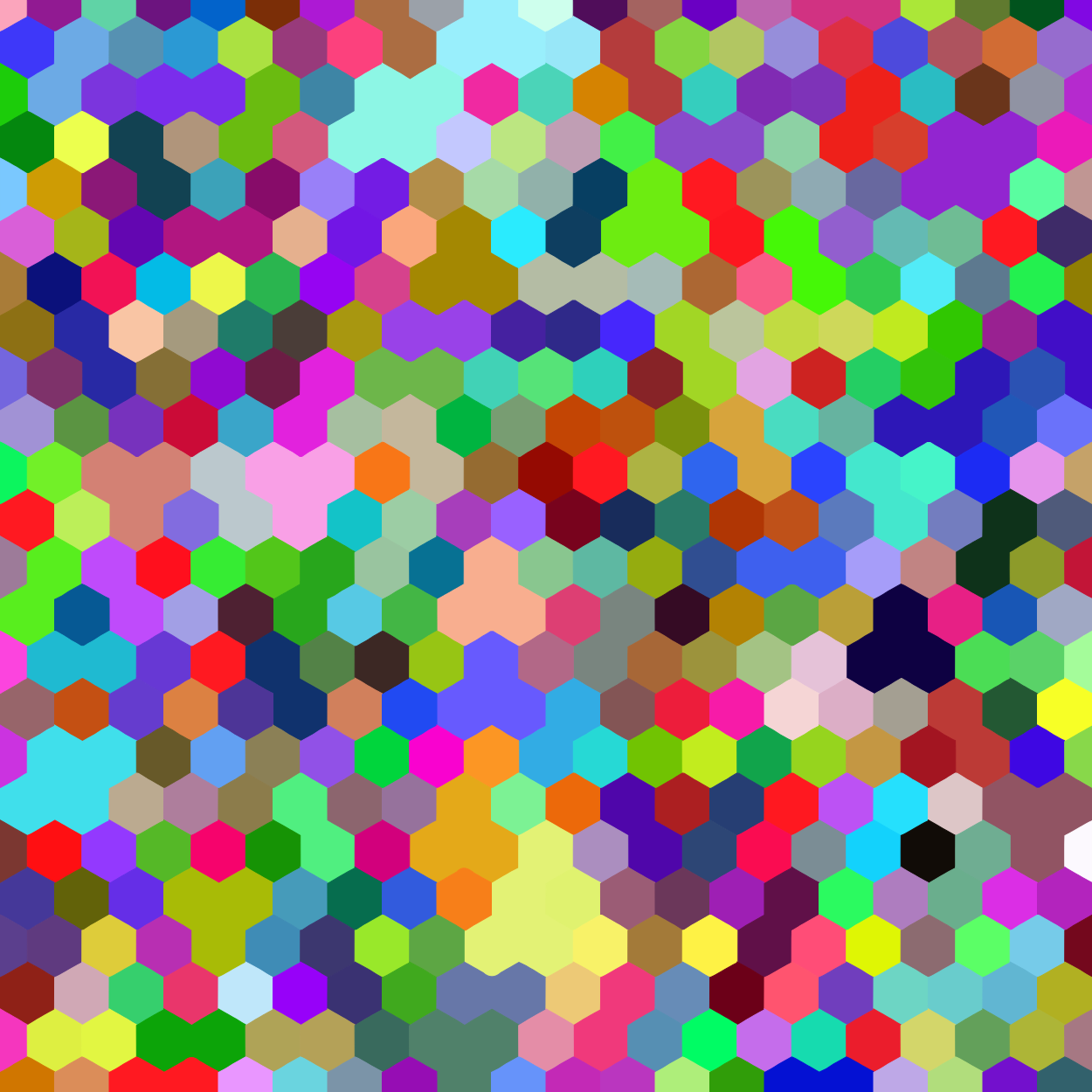 This is a colorful, abstract art piece featuring a multitude of different colors and shapes. It appears to be a close-up view of a patterned surface with various shades of red, green, blue, yellow, purple, orange, and pink. These vibrant hues create an eye-catching and lively atmosphere in the artwork. The intricate design of the piece showcases the artist's skill in combining different colors and shapes to form a cohesive yet diverse visual experience.