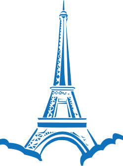 This features a blue outline of the Eiffel Tower, which is an iconic landmark in Paris. The tower stands tall and proudly against the backdrop of a white sky. Its distinctive shape and color make it easily recognizable as one of the most famous structures in the world. The contrast between the blue outline and the white background creates a striking visual effect that highlights the beauty and grandeur of this architectural marvel.
