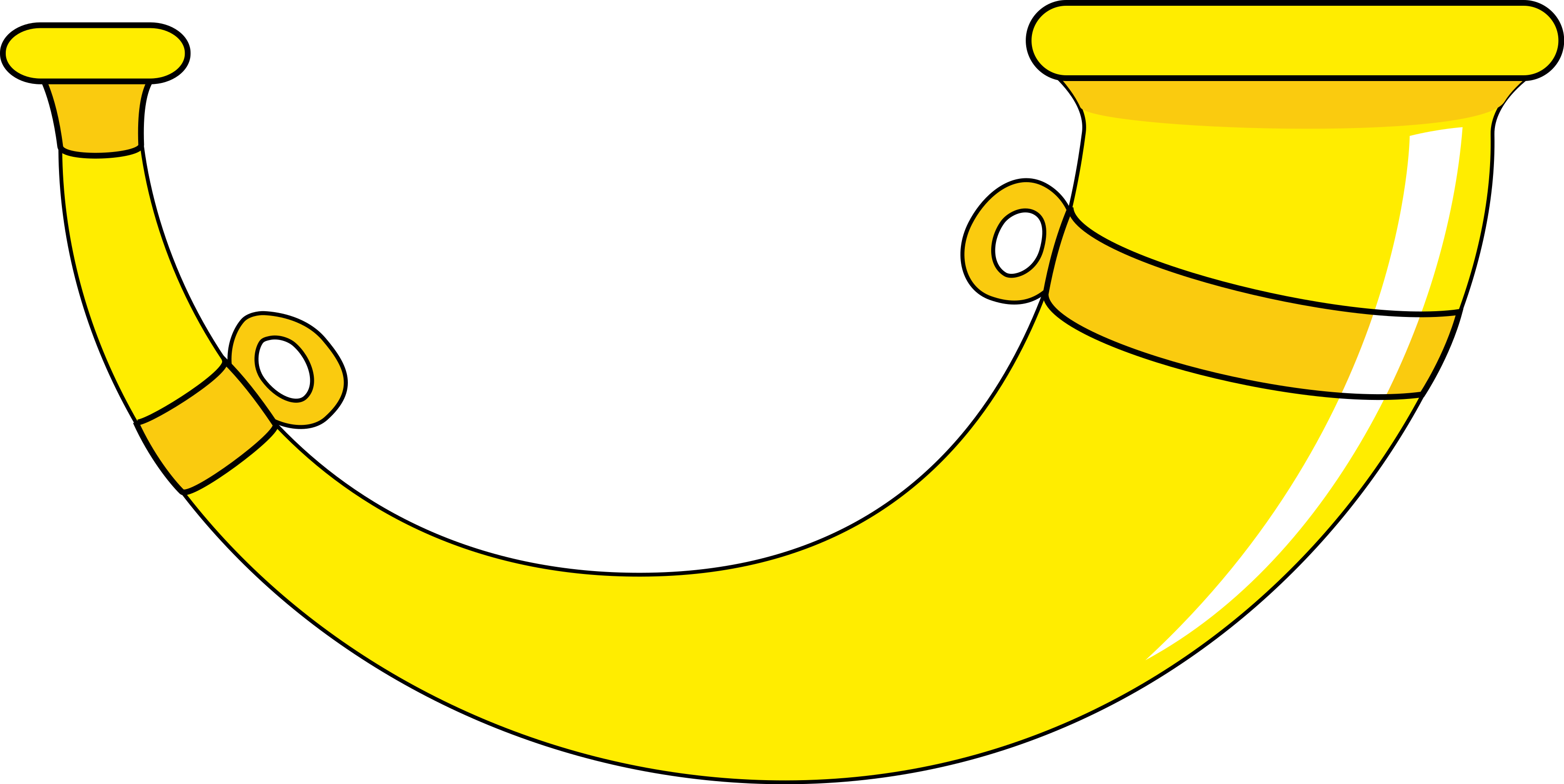 This features a large, yellow trumpet with two gold handles. It is placed on a white background, which makes the trumpet stand out prominently in the scene. The trumpet's shape and color give it an elegant appearance, making it an interesting focal point for any artistic composition or design project.