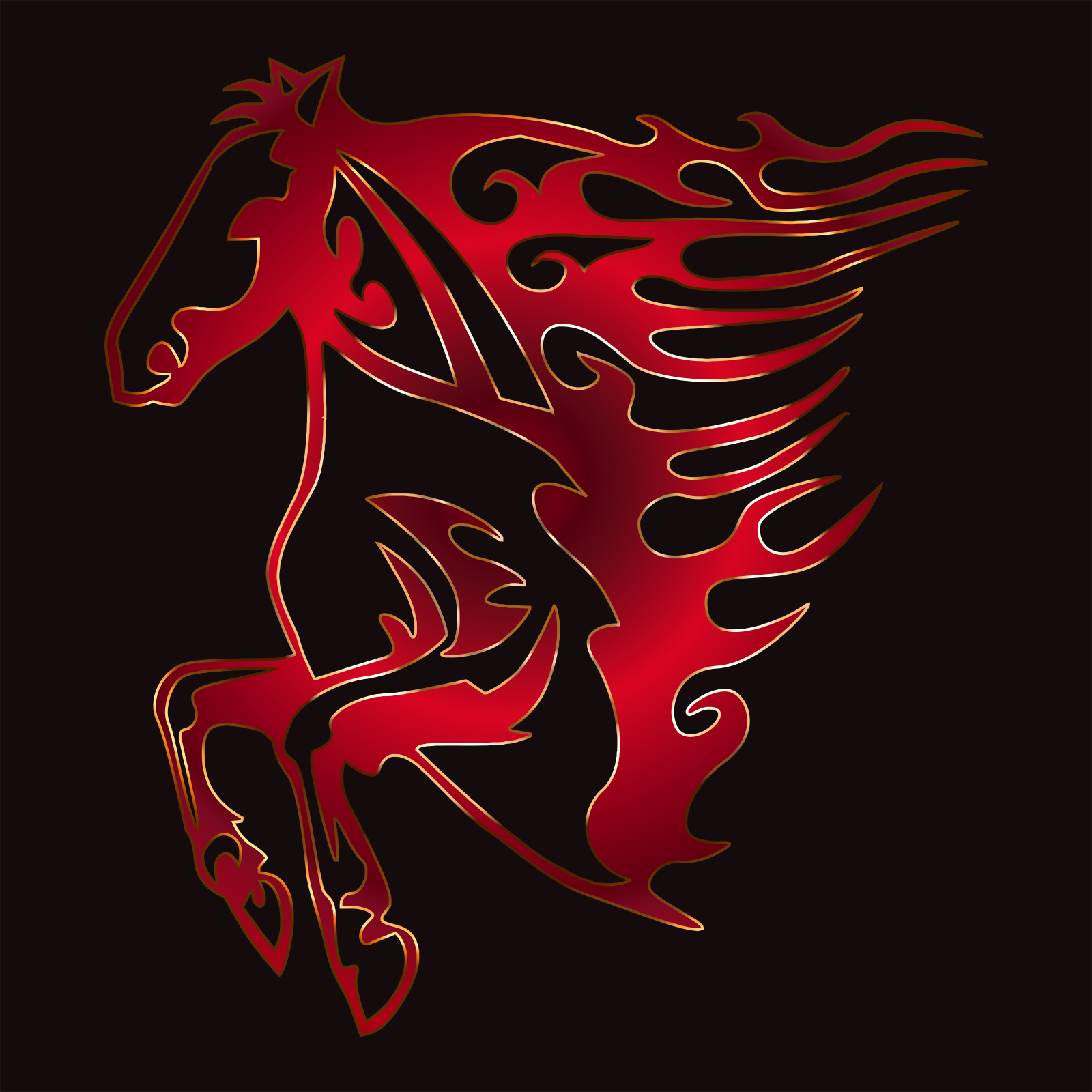 Tags: abstract, animal, art, black background, colorful, fire, flame, gold, horse, metallic, red, shiny, design, pattern, horse red