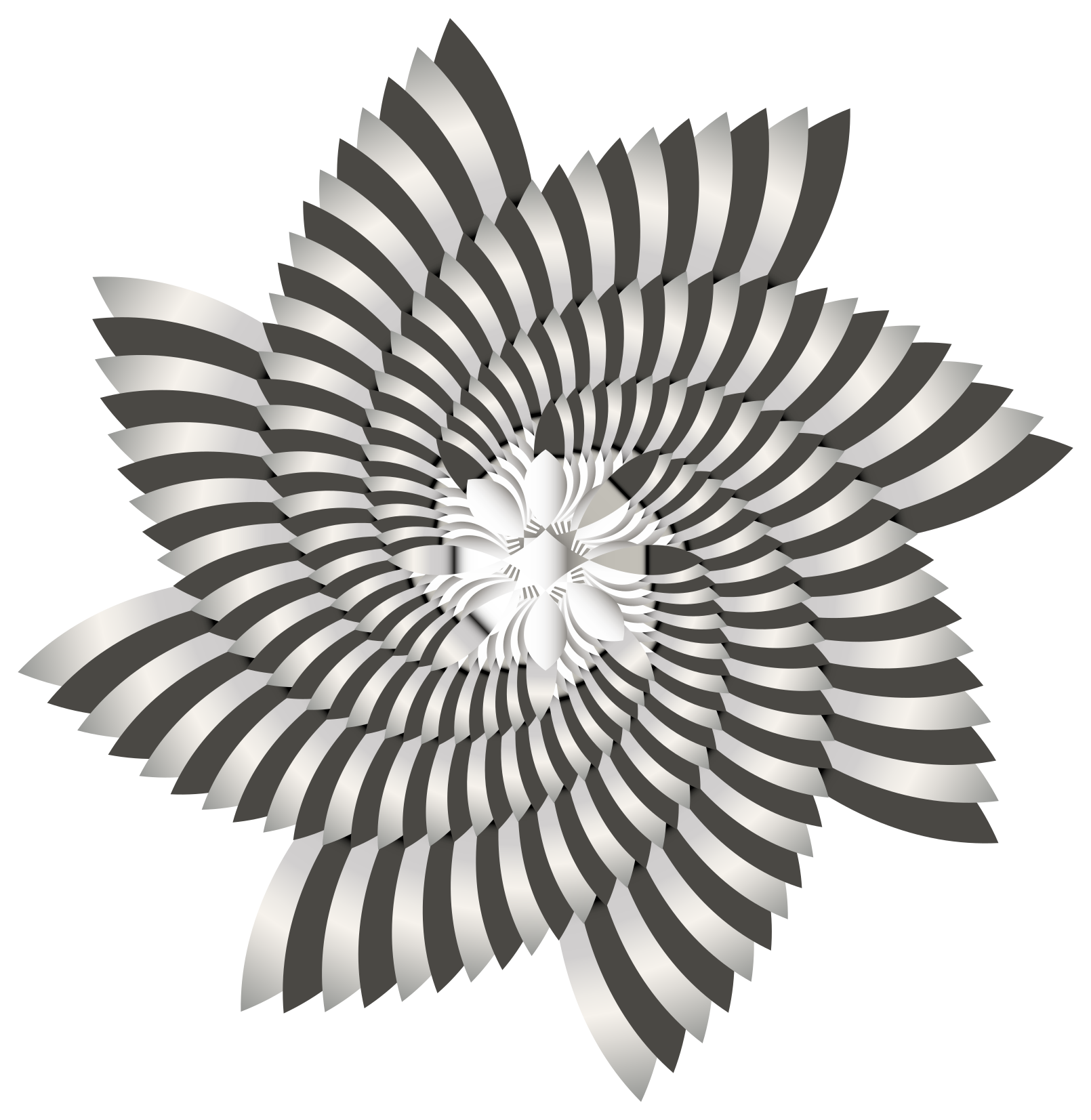 This features a large, intricate design that resembles a flower or a swirl. It is composed of multiple layers and shapes, creating an eye-catching pattern. The colors in the design are predominantly black and white, with some grays and browns also present. The overall effect is a visually striking piece of artwork that showcases the artist's skill and creativity.