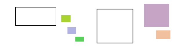 This features a collection of various colored squares and rectangles arranged in different positions. There are four distinct shapes, each with its own unique color. These shapes can be seen placed on top of one another or next to each other, creating an interesting visual effect. The colors used for the squares include green, purple, yellow, and orange, adding a vibrant touch to the scene. Overall, it is a creative composition that showcases different shapes and colors in a visually appealing manner.