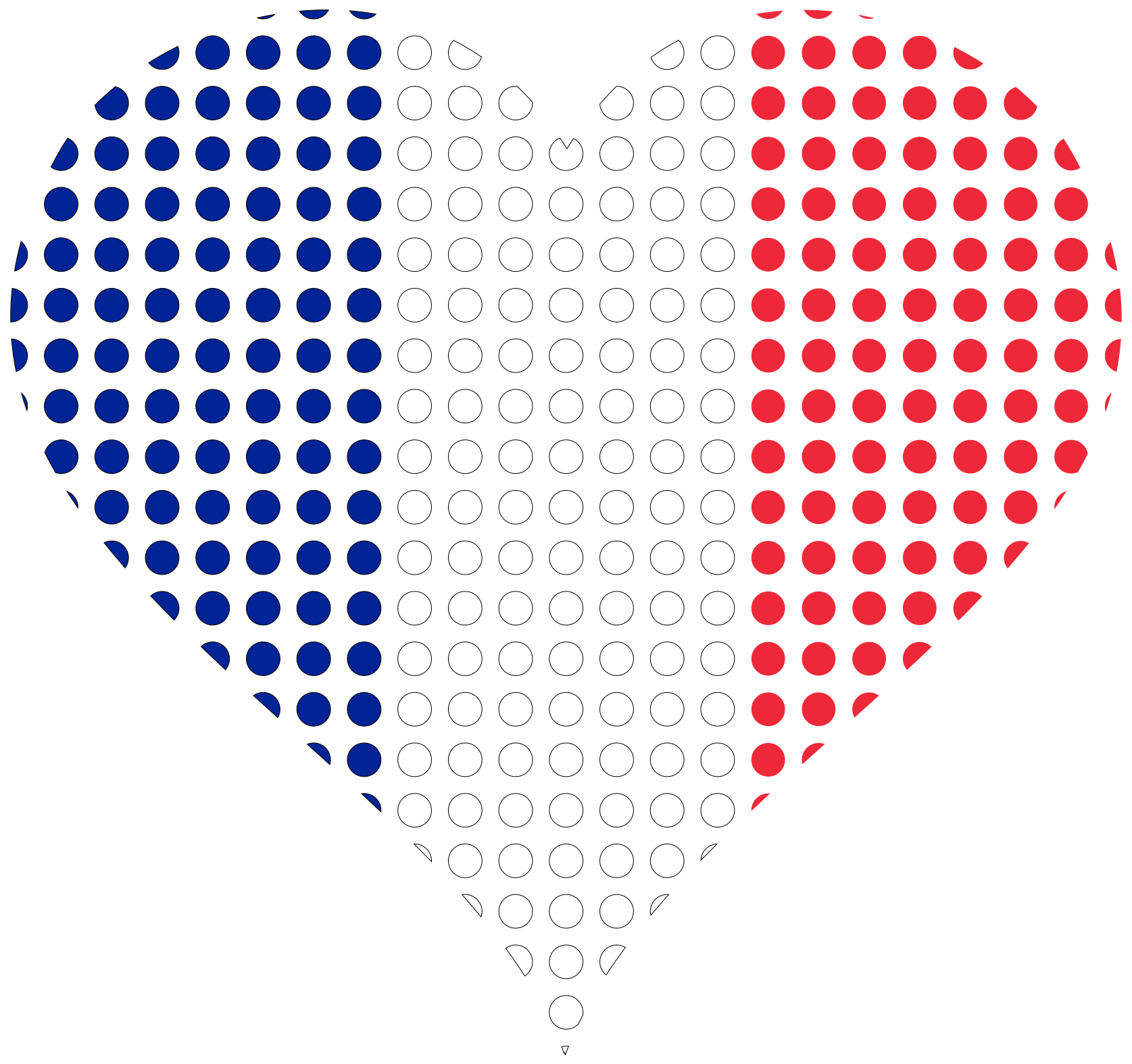 This features a heart-shaped design with the colors of red, white, and blue. These colors are commonly associated with France's flag, which is made up of horizontal stripes of red, white, and blue; three vertical bands of the same colors; and five smaller circles arranged in a cross pattern on the white background. The heart shape is filled with these colorful dots, creating an eye-catching and patriotic design.