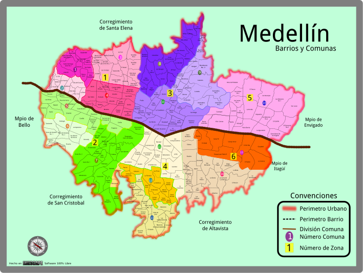 This is a completely free image Mapa de Medellín con barrios, comunas y zonas that you can download, post, and use for any purpose.
