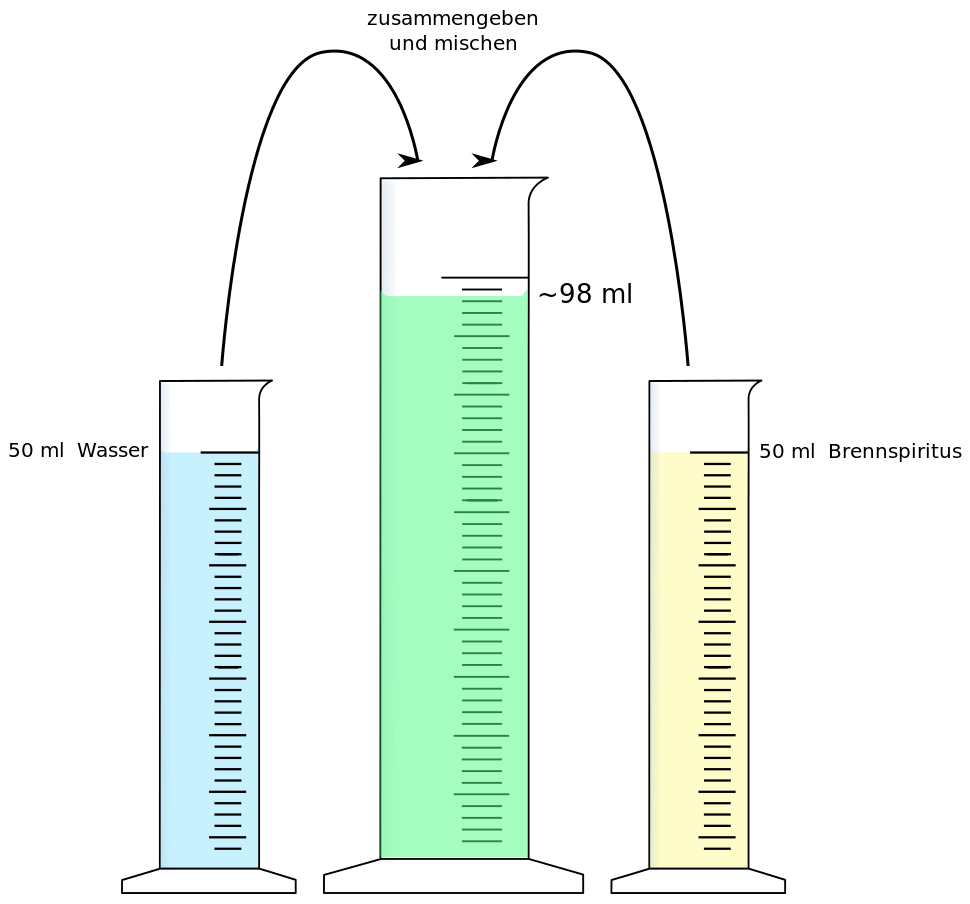 Tags: alkocol, alkohol, cylinder, messure, messzylinder, particles, teilchenmodell, wasser, water, chemicals mixing