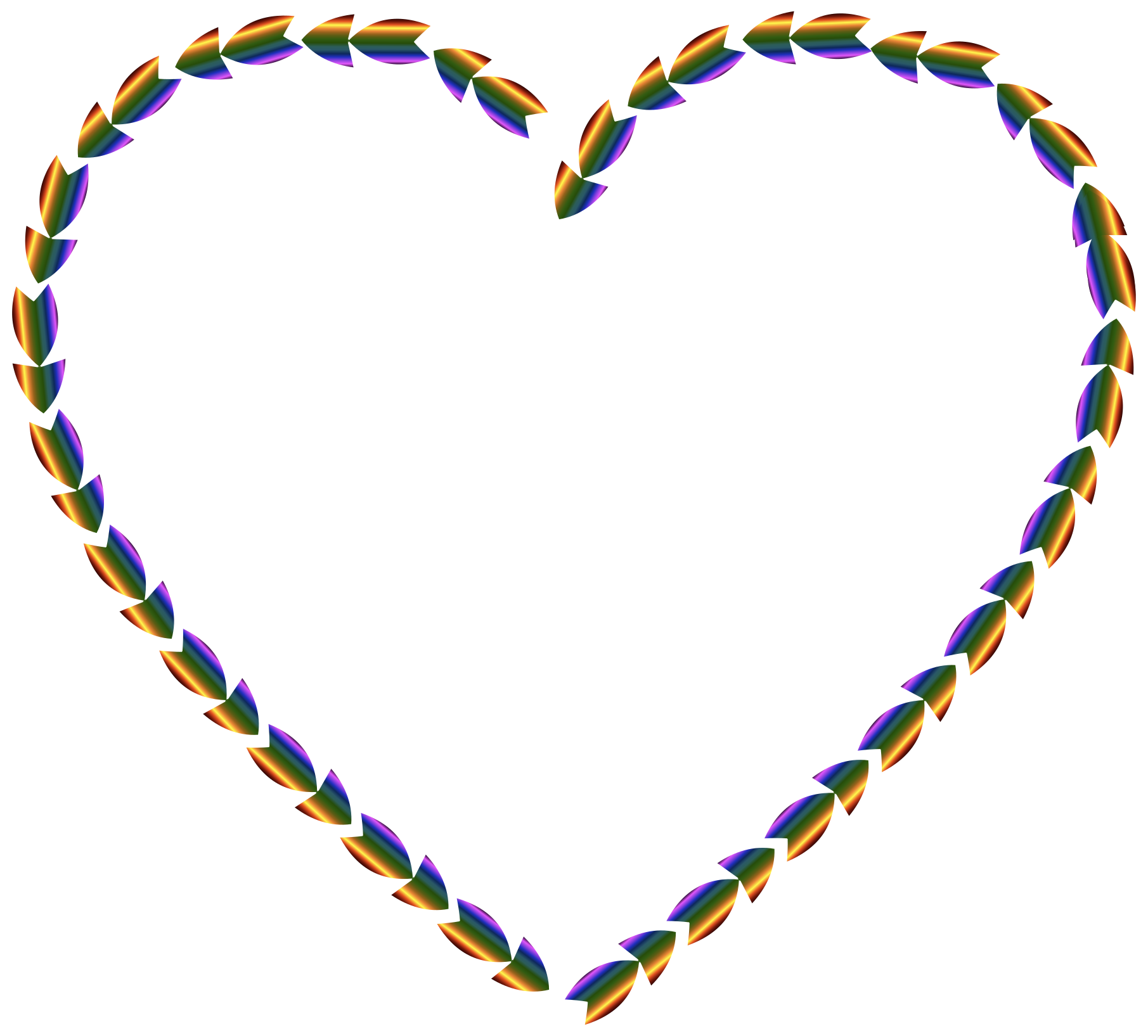 This features a heart-shaped design with colorful arrows surrounding it. There are multiple arrows of various colors, including red, green, and purple, creating an eye-catching pattern. The arrows are arranged in such a way that they form the shape of a heart, making for a visually appealing and unique design. This creative piece could be used as a decoration or even as a symbol to represent love and affection.