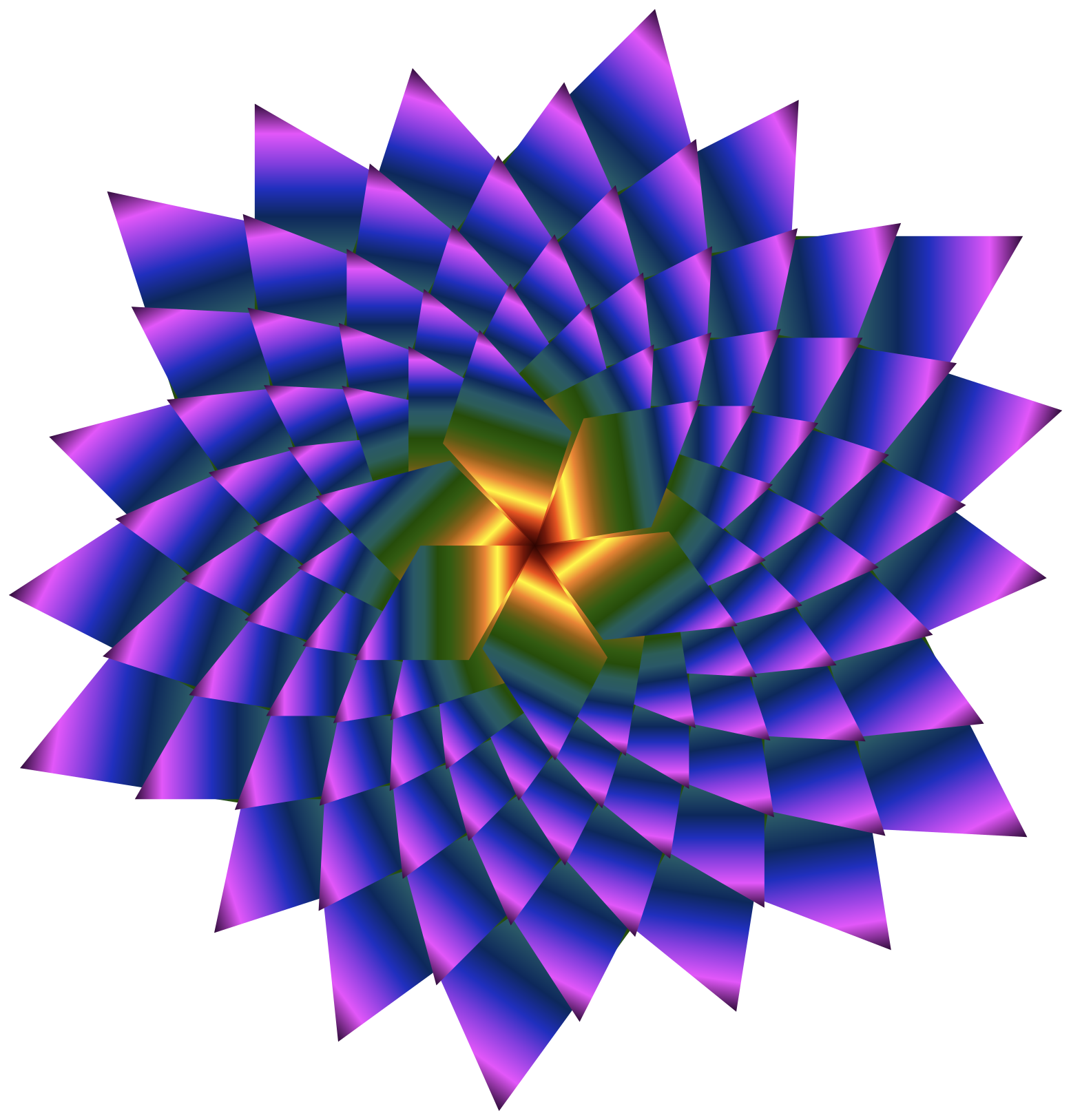 This features a large, colorful flower with purple petals and a yellow center. It appears to be an abstract design or possibly a mandala, as it is composed of many interconnected circles. The flower's vibrant colors make it stand out against the white background, drawing attention to its intricate details. The combination of purple and yellow hues adds a sense of depth and visual interest to the overall composition.