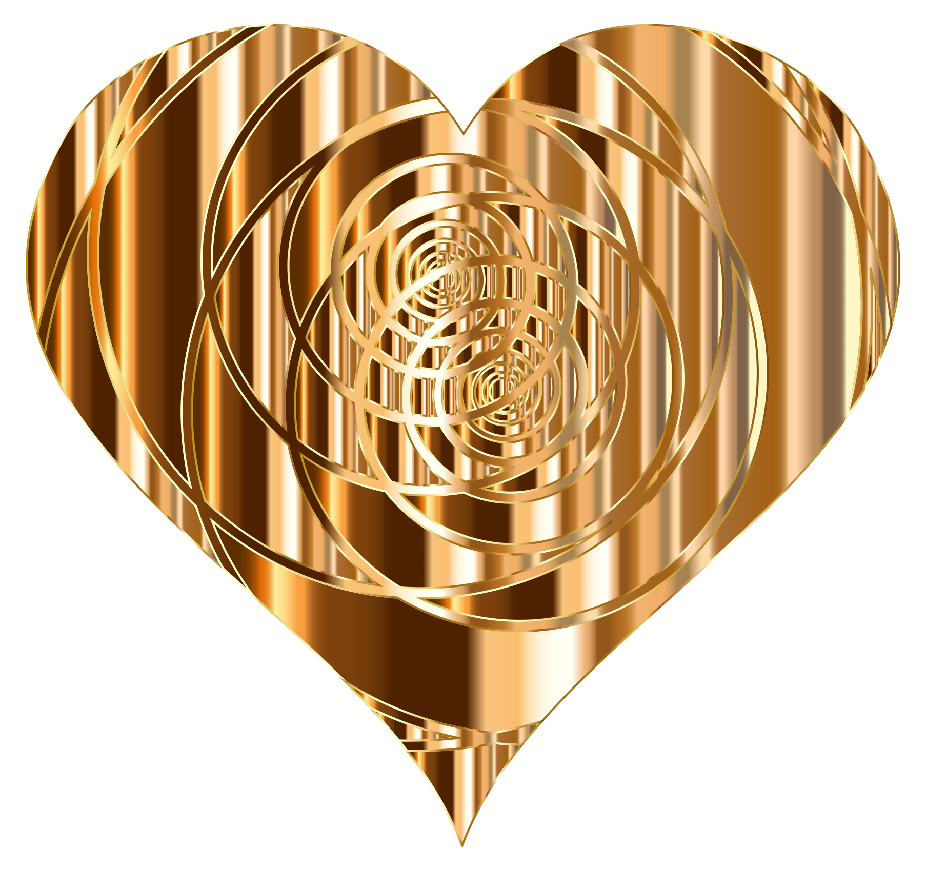 This features a golden heart with an intricate design on it. The heart is made up of various shapes and patterns, giving it a unique appearance. It appears to be a close-up view of the heart, allowing for a detailed examination of its intricate details. The gold color adds a sense of warmth and elegance to the image, making it an attractive piece of art or decoration.