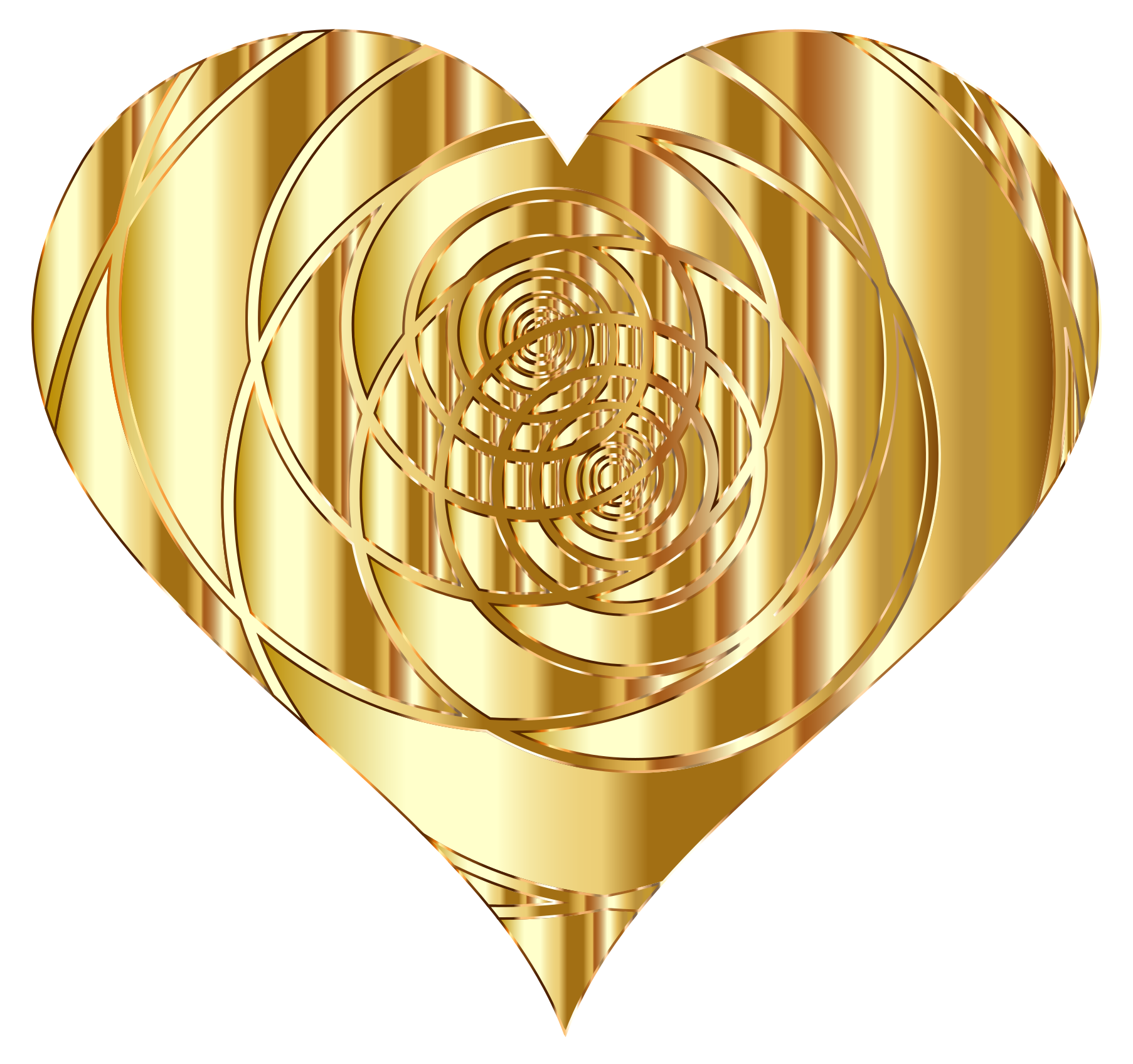 This features a golden heart with an intricate design, resembling a spiral. The heart is made of gold and has a unique pattern that gives it a distinctive appearance. The spiral design adds depth and interest to the overall shape of the heart, making it stand out as a beautiful piece of art or decoration.