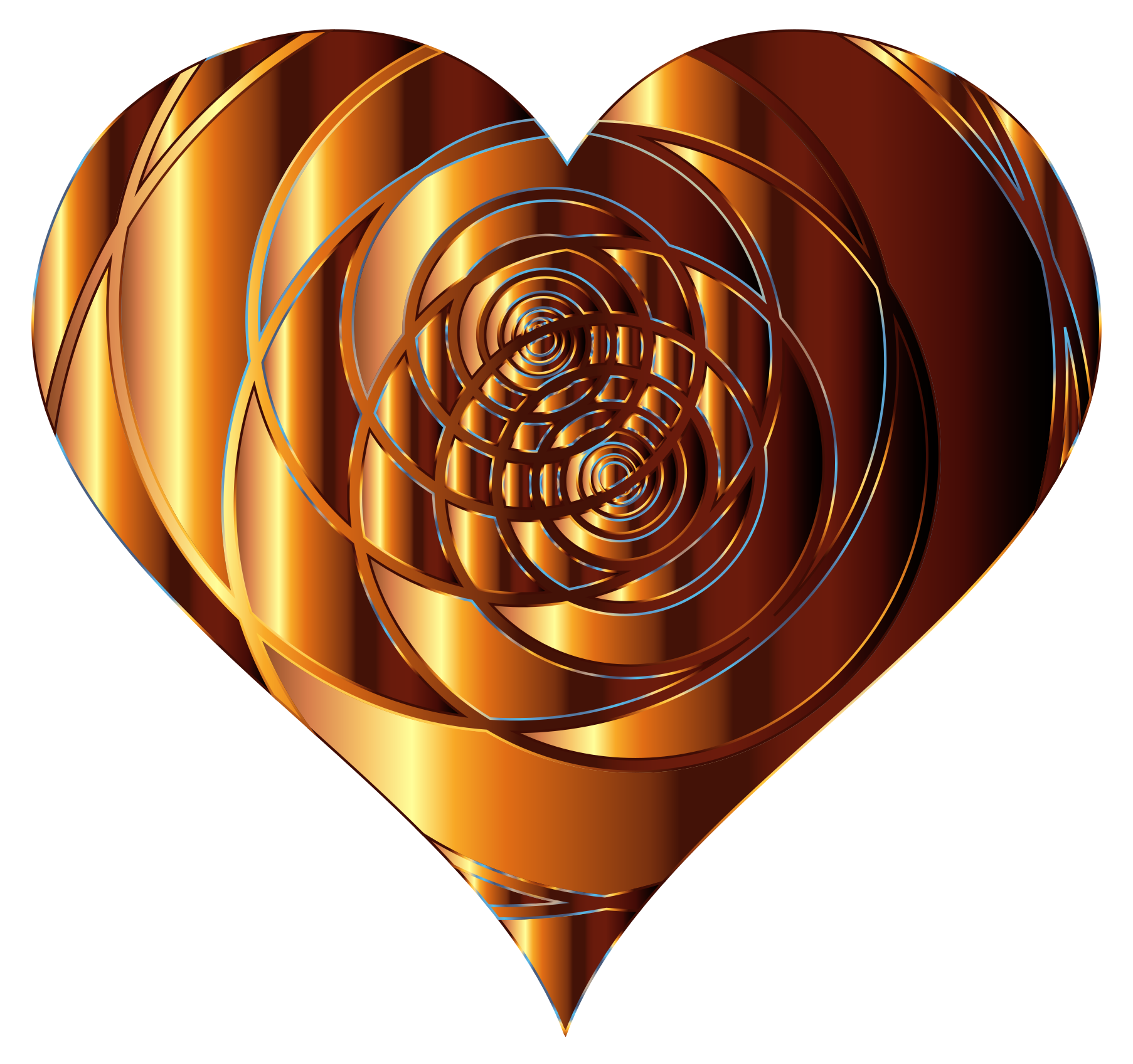 This features a heart-shaped design with an intricate pattern of swirls and circles. The heart is made up of various shapes, including a large circle in the center surrounded by smaller circles. These circles are arranged in a spiral pattern that extends outwards from the central circle, creating a visually appealing and unique design. The overall effect gives the impression of a golden or bronze-colored heart, adding an artistic touch to the image.