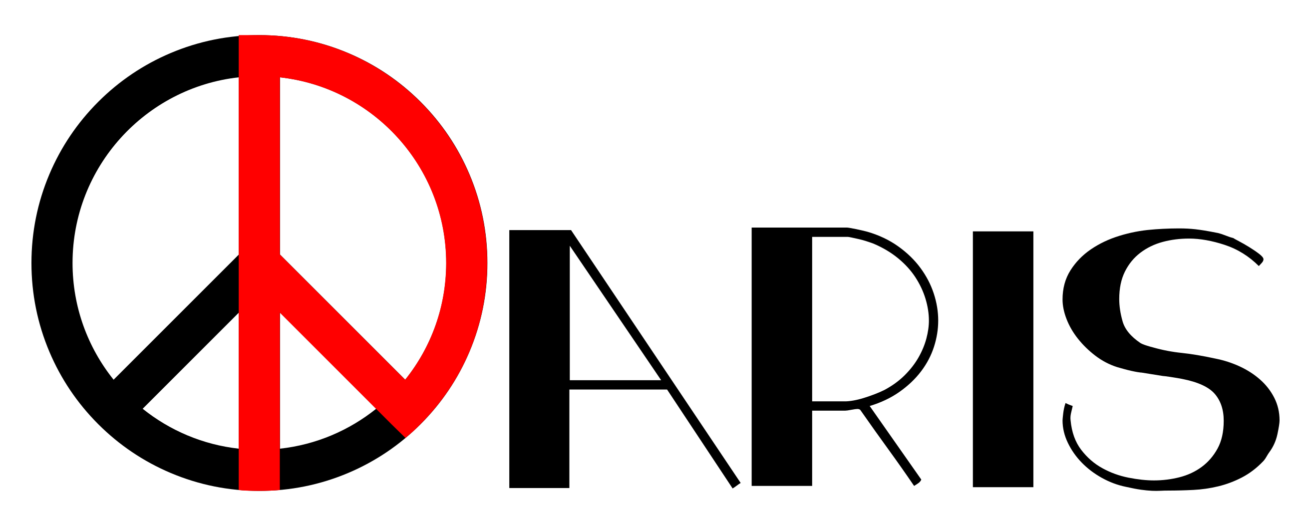This features a peace sign with the word "Paris" written below it. The peace sign is red and black, while the word "Paris" is in white letters. This design creates an interesting juxtaposition between the symbol of peace and the city of Paris. The combination of colors and textures adds visual interest to the image, making it a unique and eye-catching piece of art or design.