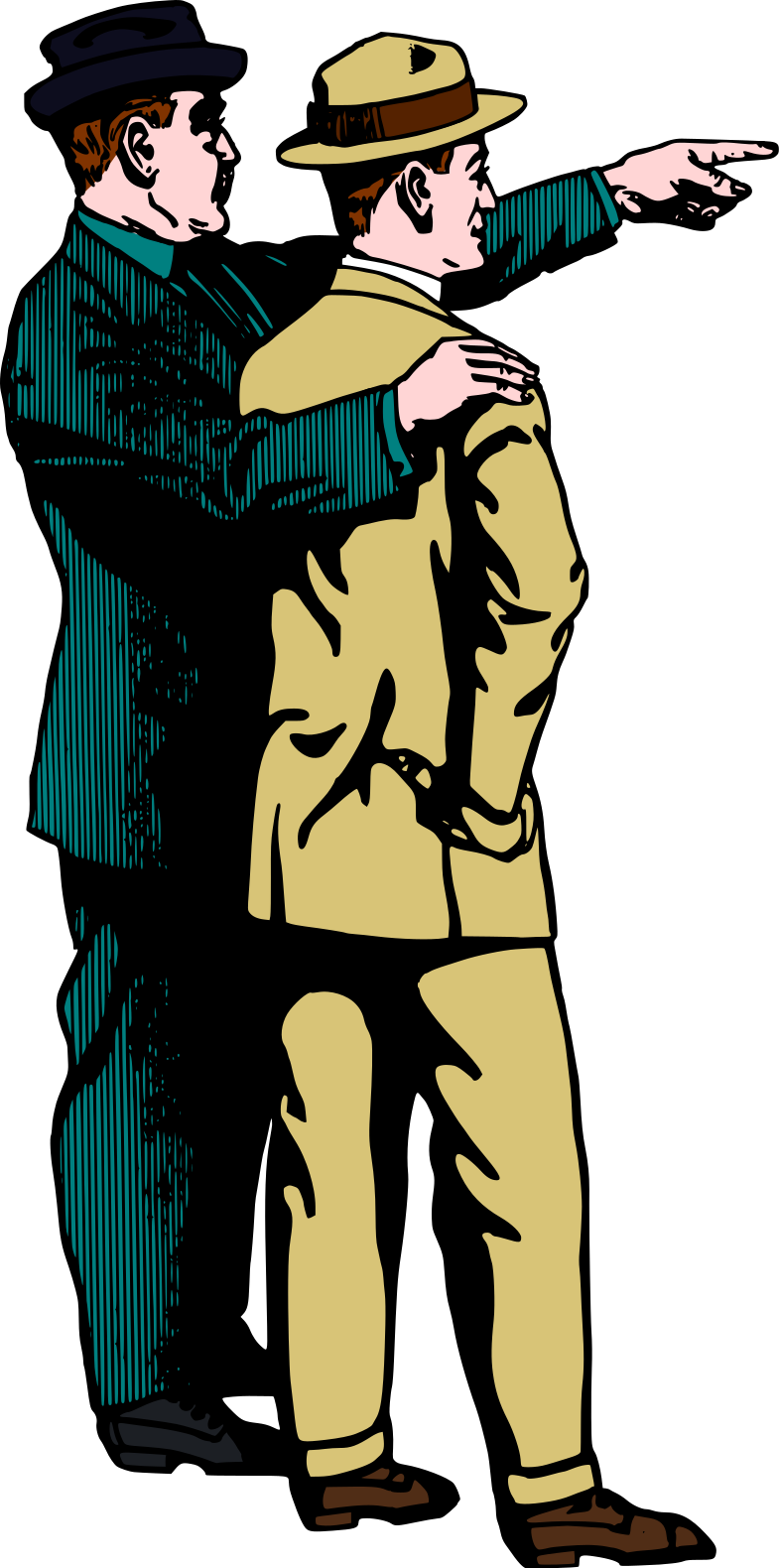 Tags: hat, indicate, man, old, point, pointer, semi-realistic people, suit, vintage, young, cartoon, illustration
