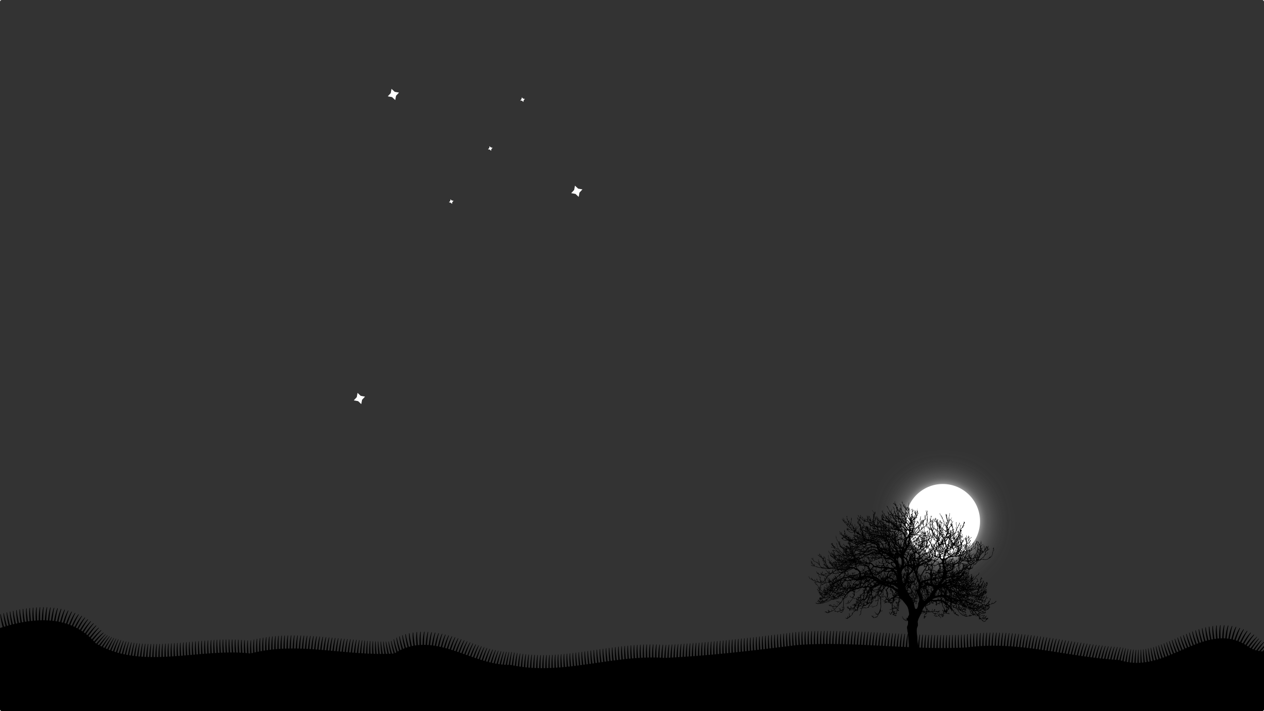 This features a tree standing alone in the middle of an open field at night. The sky is dark, and there are several stars visible in the background. A moon can also be seen in the distance, adding to the serene atmosphere of the scene. The tree appears to be the only object with any detail or color, as it stands out against the blackness of the night.