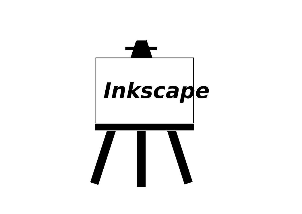 This features a black and white drawing of an easel with a canvas on it. The canvas is titled "Inkscape," which suggests that the drawing may be related to digital art or design. The easel itself has four legs, providing stability for the canvas as it is displayed. The overall composition of the image gives off a sense of simplicity and elegance, focusing on the easel and its canvas rather than any additional elements in the background.
