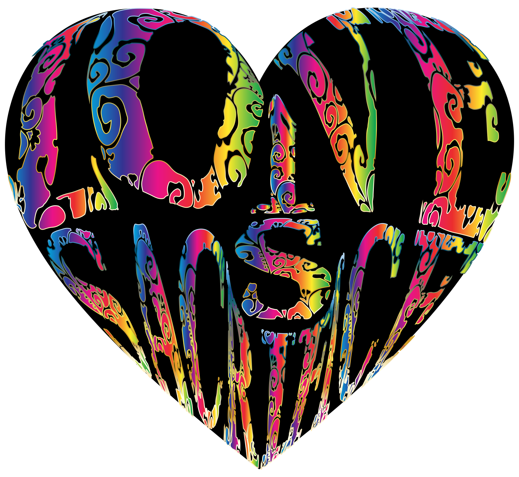 This features a heart-shaped design with the word "Love" written in various colors. The heart is made up of different colored shapes, including blue, green, yellow, and orange. These colors are arranged in such a way that they create an eye-catching pattern on the heart's surface. The combination of these vibrant colors and the heart shape gives the image a unique and visually appealing appearance.
