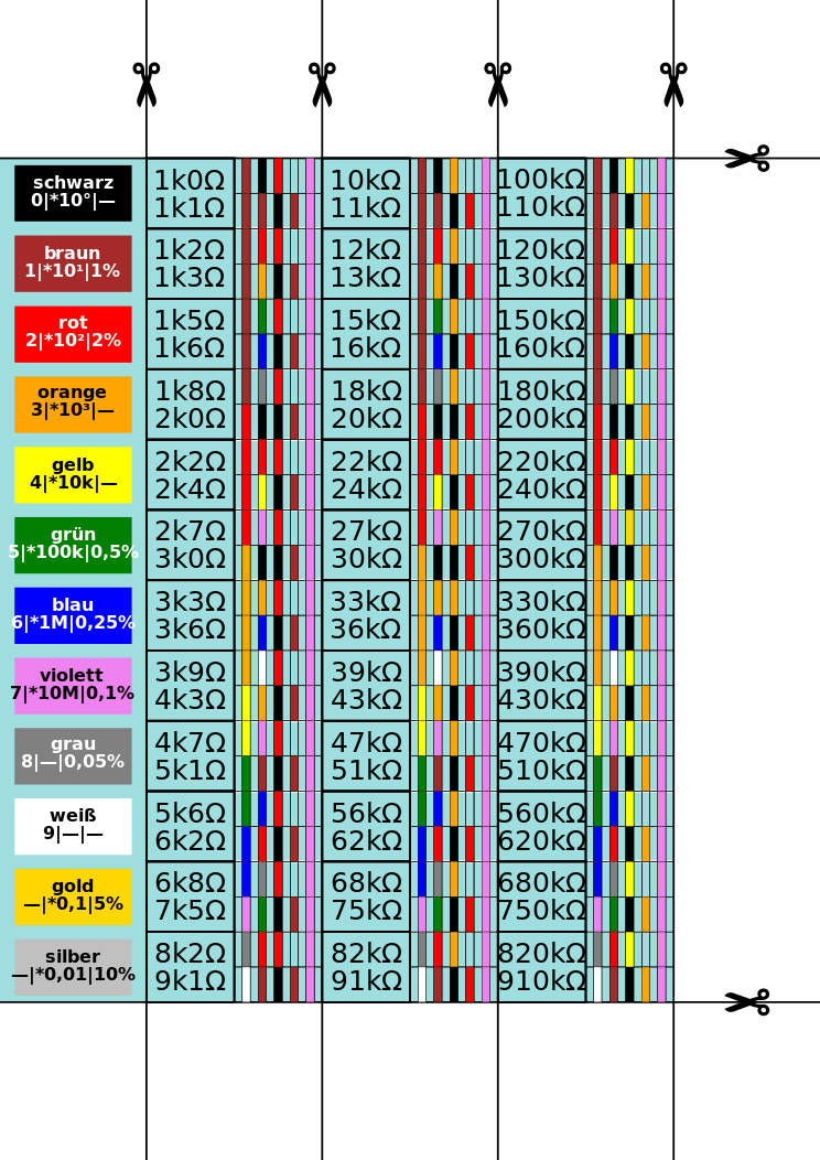 Tags: e12, e24, electronic color code, elektrischer widerstand, farbkodierung, farbkodierung widerstand, widerstandsreihe