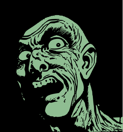 This features a man with his mouth open, appearing to be scared or surprised. He has green skin and is the main focus of the picture. The background is black, which adds emphasis to the man's expression. This drawing may have been created using a computer program that converts an image into a green-toned version, giving it a unique appearance.