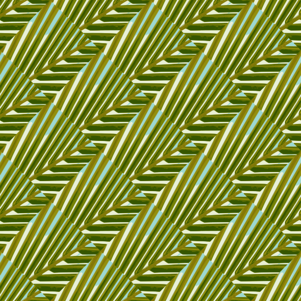This features a pattern made out of palm leaves, creating an intricate and visually appealing design. The leaves are green in color, adding to the natural ambiance of the scene. The background is square-shaped, providing a clean and organized appearance for the overall composition. This unique pattern could be used as a decorative element or even as a textile print, showcasing its versatility and artistic appeal.