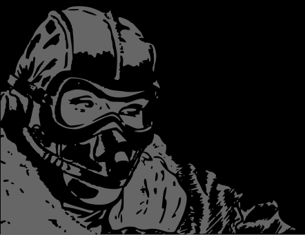 This is a black and white drawing of a pilot. He has goggles on his face, which are the only part of him visible in the picture. The rest of his body is obscured by the drawing style. The pilot appears to be looking directly at the viewer, giving an impression that he is staring into the distance or focusing intently on something. This artistic representation of a pilot evokes a sense of mystery and intrigue, as it captures only one aspect of his appearance while leaving the rest of him hidden from view.