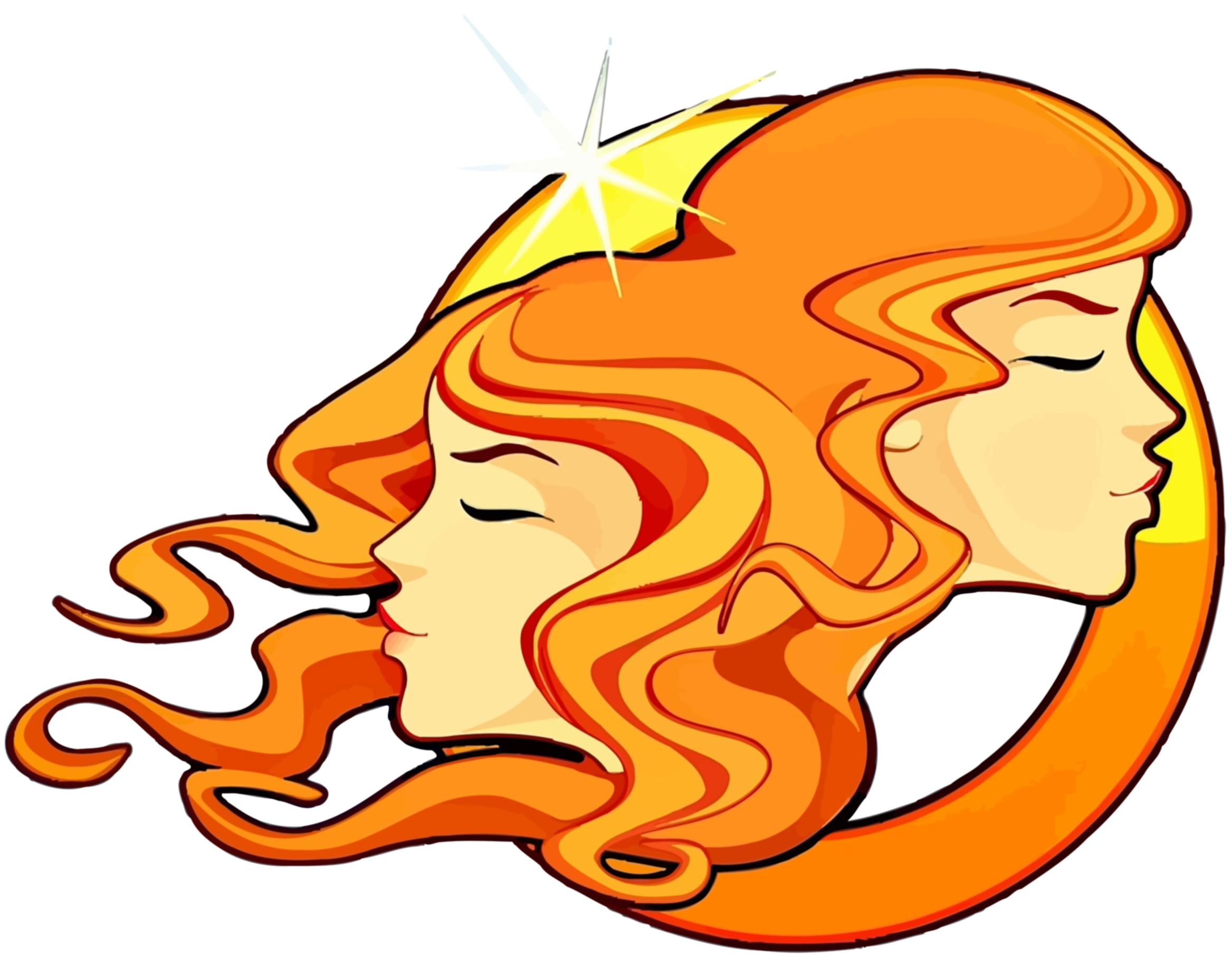 Tags: cartoon, woman, hair, orange, sun, moon, sign gemini