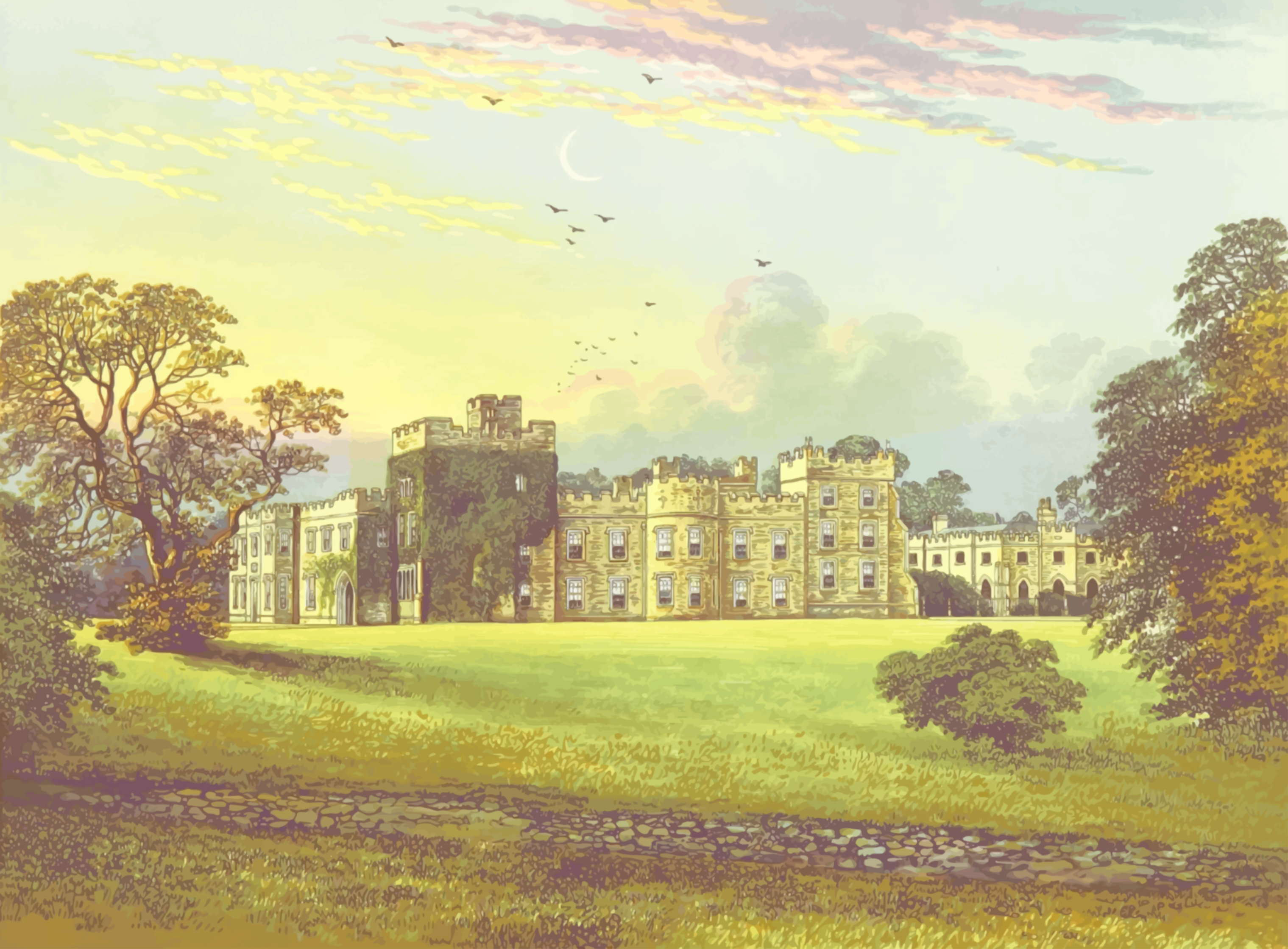 Tags: ancestral, ancestry, architecture, britain, building, castle, home, house, mansion, stately, uk, bird, yellow sky, grassy field