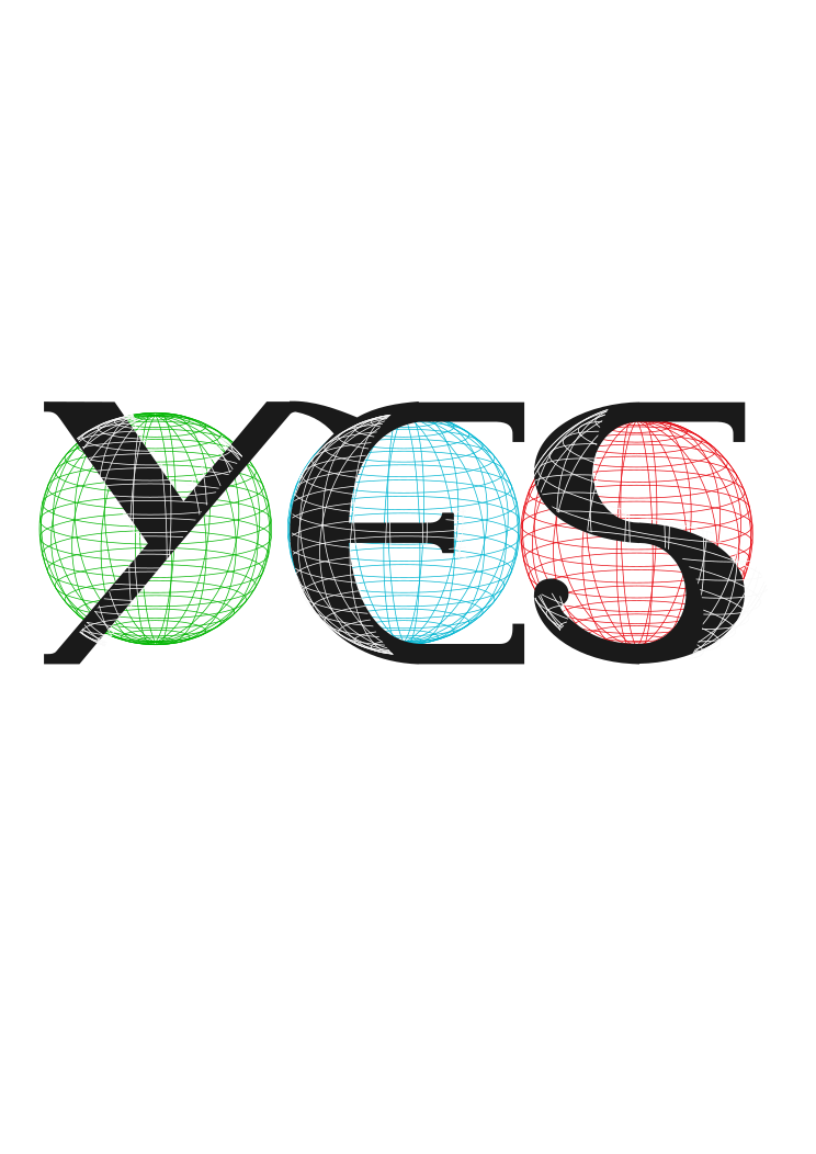 This features a unique and creative design that combines the word "YES" with a globe. Each letter of the word is adorned with a colorful, transparent globe representing different countries or continents. The globes are placed on top of each letter in a visually appealing manner. This artistic representation of the word "YES" showcases an interesting blend of language and geography, making it an intriguing visual piece.