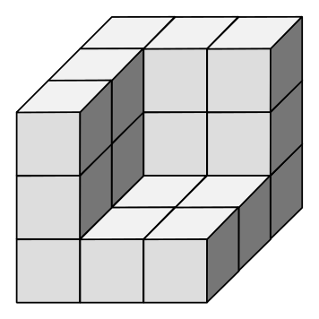 This features a large, three-dimensional cube made up of smaller cubes. These smaller cubes are arranged in a way that creates an intricate pattern on the surface of the larger cube. The overall appearance is quite complex and visually interesting, making it an excellent subject for a puzzle or art project. The arrangement of these smaller cubes gives the impression of a honeycomb-like structure, with each individual cube forming part of a larger whole.