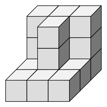 This features a large, three-dimensional display of cubed blocks. These blocks are arranged in various stacks and layers, creating an interesting visual effect. There is a total of 12 distinct blocks visible in the scene, with some placed on top of each other to form taller structures. The arrangement of these blocks creates a sense of depth and complexity, making it an engaging and educational display for geometry lessons or as a decorative piece.