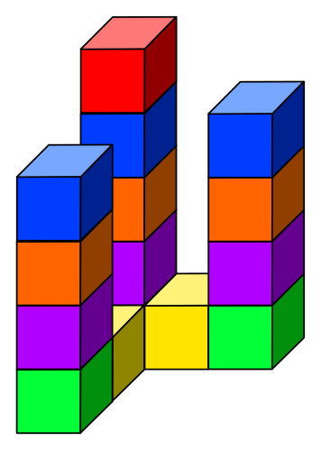 This features a colorful display of three stacked blocks, each made up of different colored squares. These blocks are arranged in such a way that they create an interesting and visually appealing pattern. The colors used for the blocks include red, blue, yellow, green, purple, orange, and pink. Each block is distinctly shaped with its own unique combination of colors, making it an attractive and engaging image.