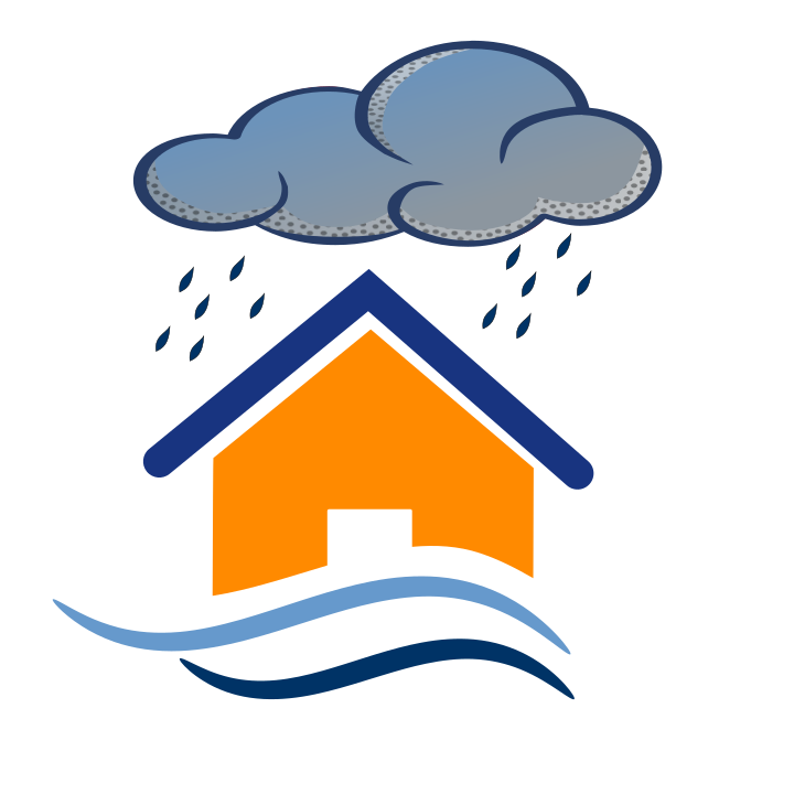 This features a house with a dark rain cloud directly above it, creating an ominous atmosphere. Below the house, there are two waves that indicate a flood, adding to the sense of danger and chaos. This illustration effectively captures the feeling of being caught in a storm or facing a natural disaster. The combination of the house, clouds, and waves creates a powerful visual representation of the impact of severe weather conditions on human-made structures and the environment.