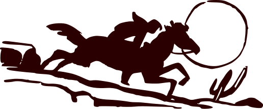 This features a cowboy riding a horse, with the man and his steed prominently displayed in the center of the scene. Above them, there is a sun that adds warmth to the atmosphere. In addition to the main subjects, there are two cacti visible on the right side of the image, adding an element of nature to the overall composition. The drawing style appears to be reminiscent of a silhouette or a black and white illustration, giving it a classic western feel.