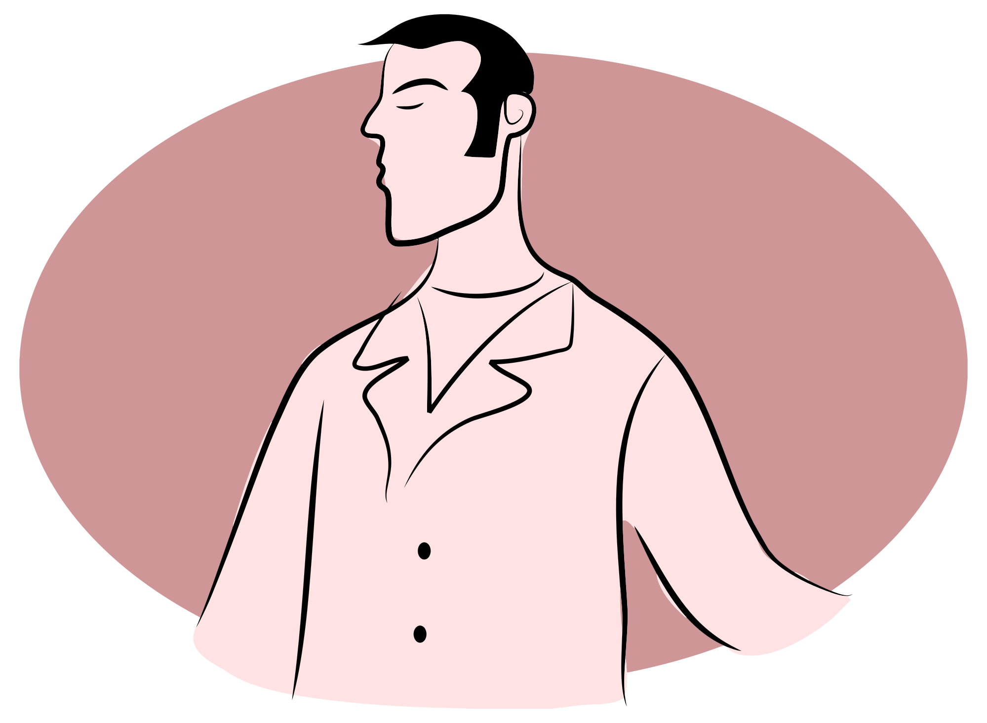 This features a man wearing a white shirt and tie, standing in front of a pink background. He appears to be looking off into the distance or possibly posing for a picture. The man is positioned towards the center of the frame, with his body facing slightly to the left. The pink background provides a contrasting backdrop for the subject, drawing attention to him and creating an interesting visual effect.