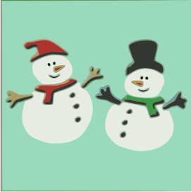 This features two snowmen standing next to each other on a green background. Both snowmen are wearing colorful hats, with one of them having a red cap and muffler, while the other has a black hat and a green muffler. They appear to be posing for a picture or enjoying their time together in the wintery setting. The overall scene is reminiscent of a classic holiday image, with the snowmen adding a playful touch to the environment.