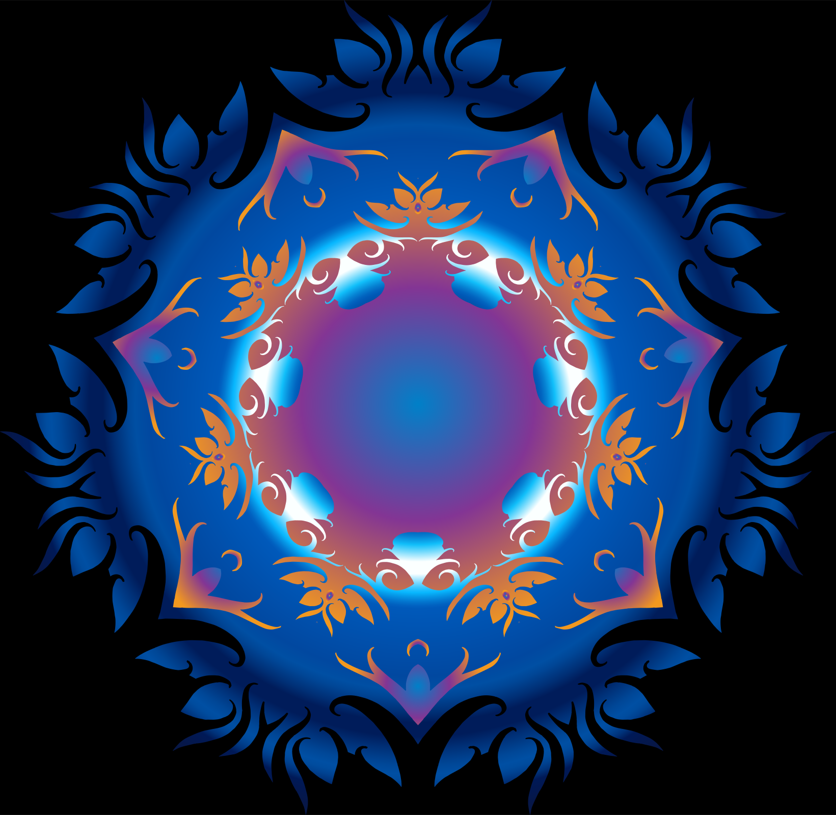 This features a blue and purple circle with an intricate design. The circle is adorned with various flowers, leaves, and other decorative elements that create a visually appealing pattern. The colors of the circle are predominantly blue and purple, giving it a vibrant and lively appearance. The overall composition of the image showcases the beauty of nature through its artistic representation in the form of this ornate design.