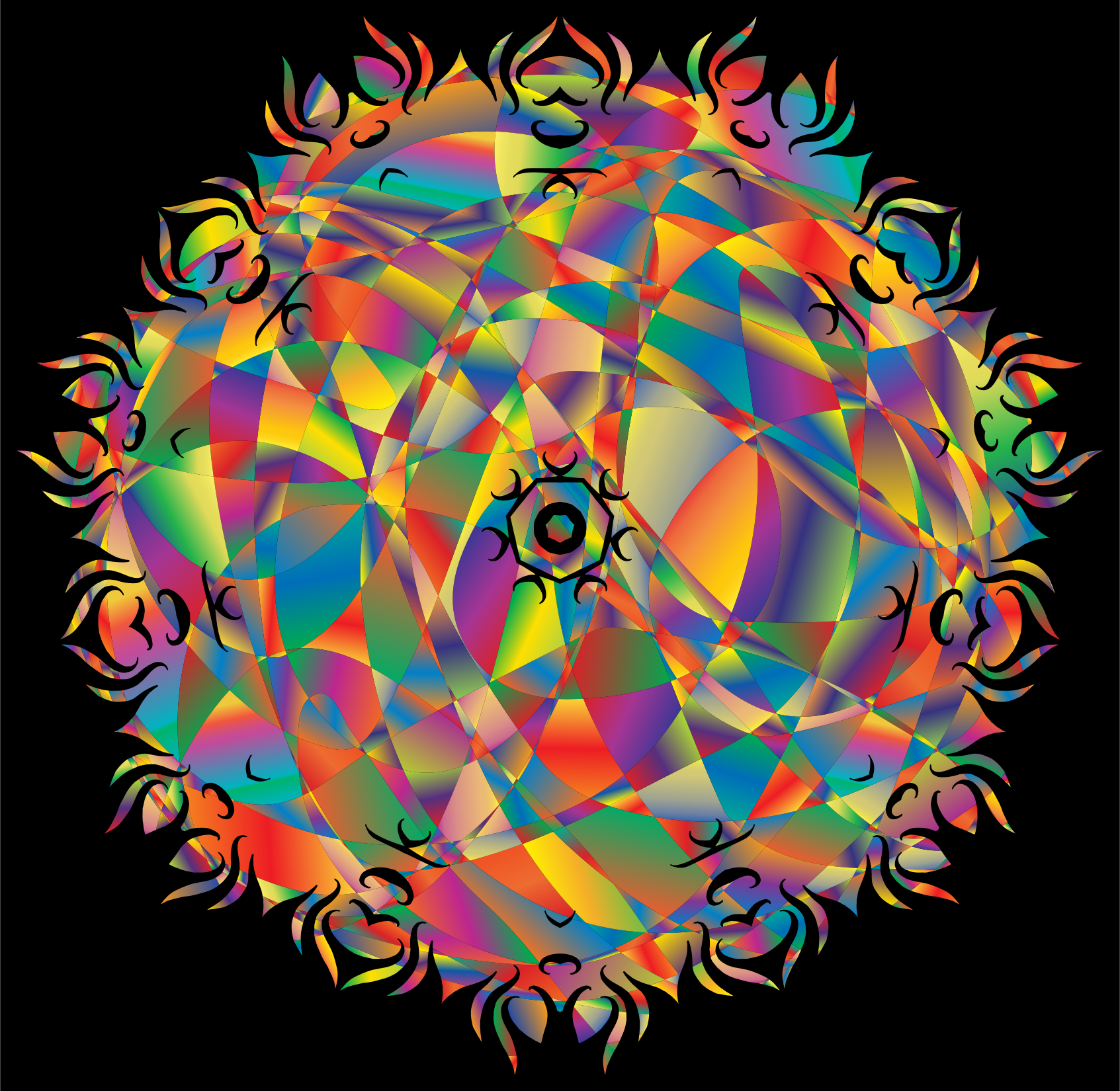 This features a colorful, abstract design with a central circle surrounded by various shapes and colors. The circle is the focal point of the artwork, and it appears to be made up of different colored squares or hexagons that are arranged in an intricate pattern. These individual squares or hexagons have a variety of colors, including red, orange, yellow, green, blue, purple, and pink. The overall effect is a visually striking and vibrant piece of artwork that captures the viewer's attention with its bold colors and unique design elements.