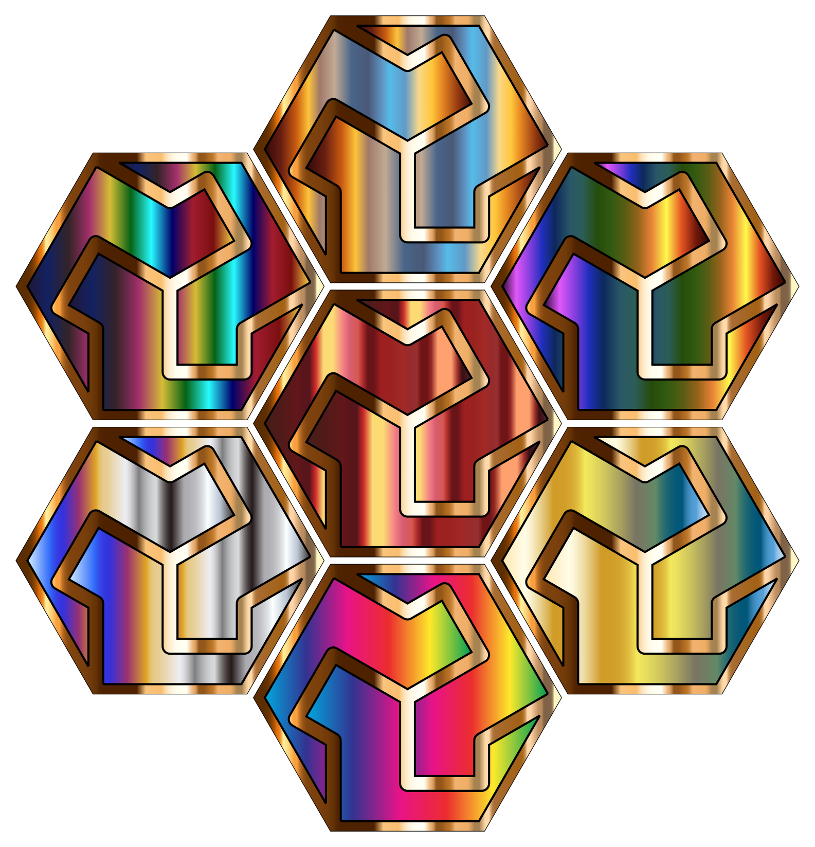 Tags: abstract, art, chromatic, colorful, geometric, gold, metallic, prismatic, rainbow, shiny, hexagon, pattern, tiles hex
