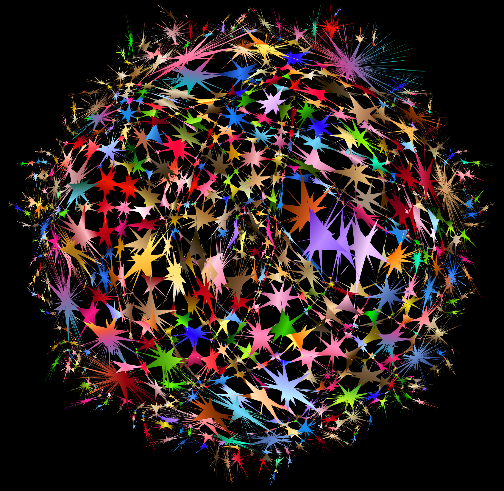 This features a large, colorful ball with many different colors and patterns on it. It appears to be a close-up of the ball, showcasing its intricate details. The ball is surrounded by various shapes and designs that create an interesting visual effect. The combination of these elements gives the impression of a vibrant and lively scene.