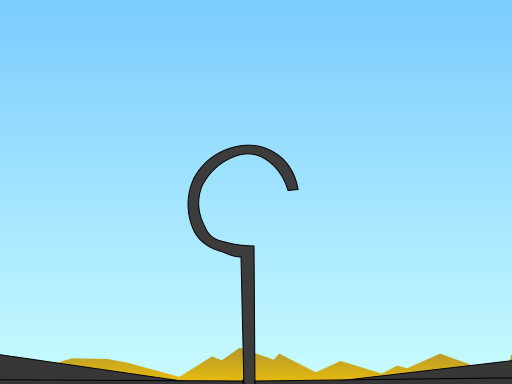 This features a metal hook standing upright in the middle of an open field. In the distance, there are mountains that provide a picturesque backdrop to the scene. The sky is light blue and appears to be cloudless, creating a serene atmosphere. This simple yet striking composition evokes feelings of tranquility and freedom, as it showcases the beauty of nature in its purest form.