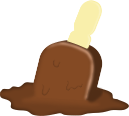 This features a brown, chocolate-covered ice cream cone that has melted and is now sitting on the ground. It appears to be in the process of melting further, creating a puddle around it. The ice cream cone is placed on top of a wooden stick, which adds an interesting element to the scene. This image captures the essence of a delicious treat that has been enjoyed and left behind, evoking feelings of nostalgia and indulgence.